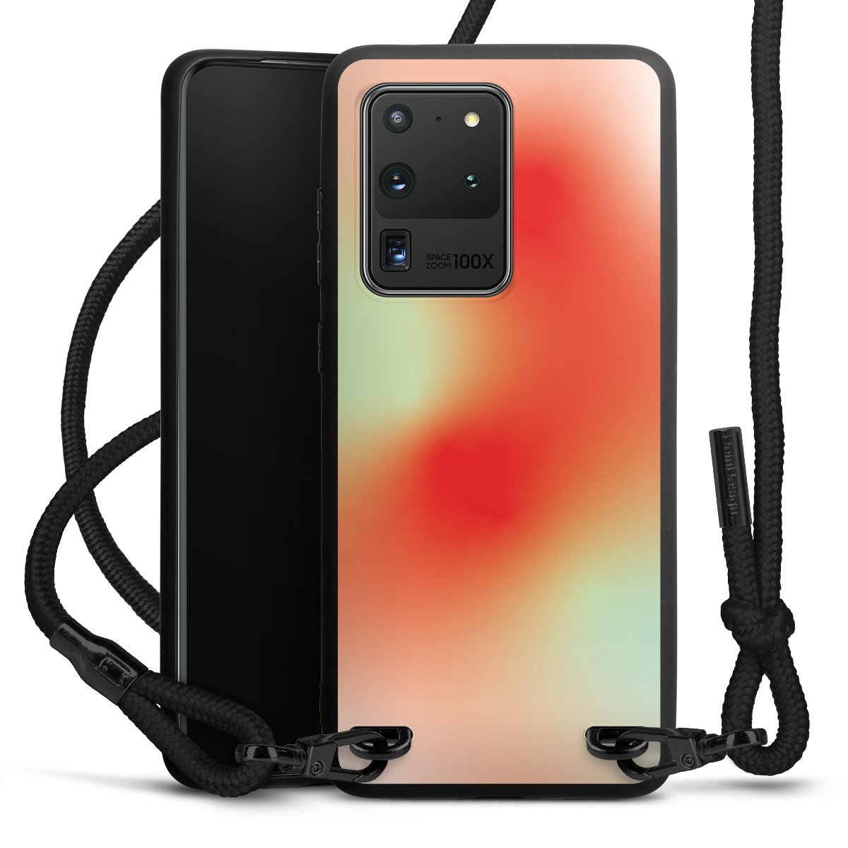 We use the solid direct print process for this phone case, which is why the print area only covers the back and the edge remains unprinted. The case to wear around your neck can be ordered unprinted, fully printed, or partially printed. For your design, either choose one of our exclusive shop motifs or get creative and create your own design, for example with photos and overlays. Design your own personal trend accessory and make an individual statement on the streets!