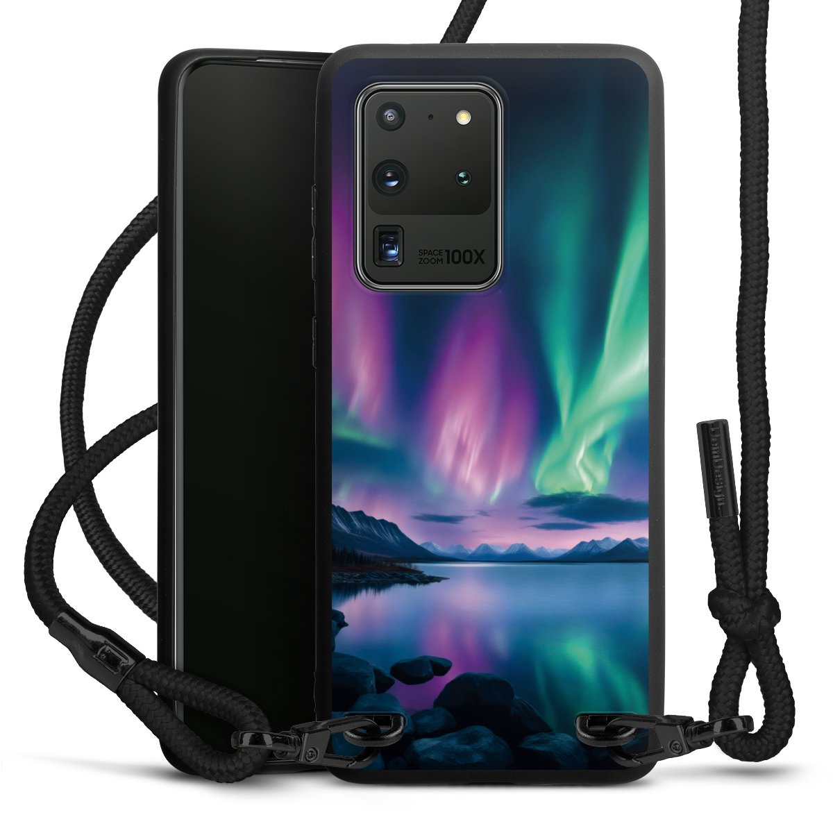 We use the solid direct print process for this phone case, which is why the print area only covers the back and the edge remains unprinted. The case to wear around your neck can be ordered unprinted, fully printed, or partially printed. For your design, either choose one of our exclusive shop motifs or get creative and create your own design, for example with photos and overlays. Design your own personal trend accessory and make an individual statement on the streets!