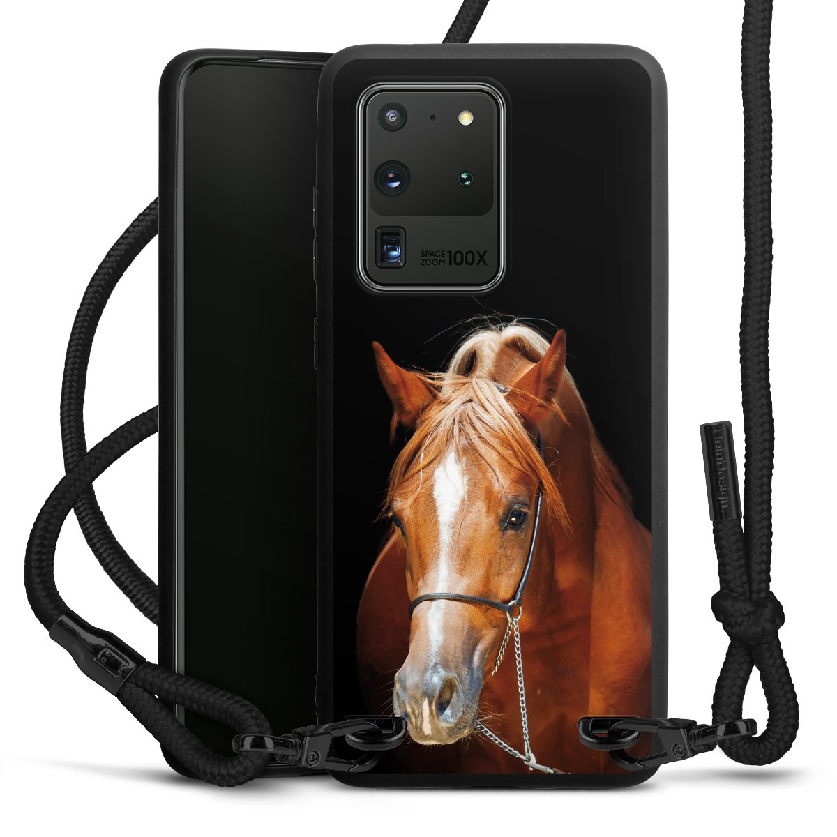 The matt black silicone case is made of flexible TPU (thermoplastic polyurethane) and offers robust protection. The durable, unbreakable material makes the cover flexible and dimensionally stable at the same time. The matte surface makes your design stand out more and is less susceptible to fingerprints and dirt. The stylish trend accessory fits comfortably in the hand and is perfectly complemented by the fabric (polyester) mobile phone strap. The braided fabric strap is approx. 1.70 metres long with a diameter of approx. 0.5 cm. Due to the special knotting technique, the length of the strap can be adjusted by simply pulling it, so that you can adapt it individually to your wishes. The practical case to wear around your neck is available with the fabric strap in black. As a little icing on the cake, we have provided the strap with a chic metal fastener in matt black. The strap is securely fastened to the case with loops made of high-quality genuine leather and press studs. The ends of the fabric strap are covered with metallic end caps and thus protected from fraying.