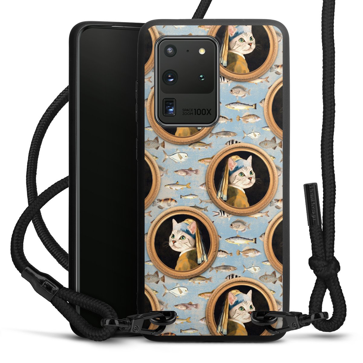 The matt black silicone case is made of flexible TPU (thermoplastic polyurethane) and offers robust protection. The durable, unbreakable material makes the cover flexible and dimensionally stable at the same time. The matte surface makes your design stand out more and is less susceptible to fingerprints and dirt. The stylish trend accessory fits comfortably in the hand and is perfectly complemented by the fabric (polyester) mobile phone strap. The braided fabric strap is approx. 1.70 metres long with a diameter of approx. 0.5 cm. Due to the special knotting technique, the length of the strap can be adjusted by simply pulling it, so that you can adapt it individually to your wishes. The practical case to wear around your neck is available with the fabric strap in black. As a little icing on the cake, we have provided the strap with a chic metal fastener in matt black. The strap is securely fastened to the case with loops made of high-quality genuine leather and press studs. The ends of the fabric strap are covered with metallic end caps and thus protected from fraying.