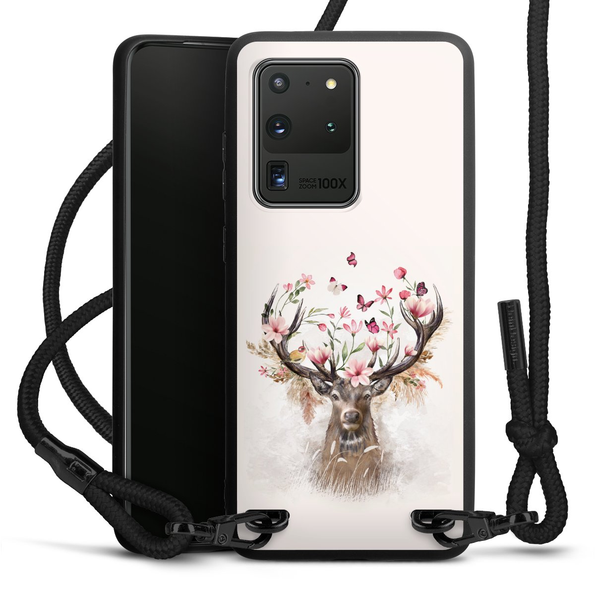 The matt black silicone case is made of flexible TPU (thermoplastic polyurethane) and offers robust protection. The durable, unbreakable material makes the cover flexible and dimensionally stable at the same time. The matte surface makes your design stand out more and is less susceptible to fingerprints and dirt. The stylish trend accessory fits comfortably in the hand and is perfectly complemented by the fabric (polyester) mobile phone strap. The braided fabric strap is approx. 1.70 metres long with a diameter of approx. 0.5 cm. Due to the special knotting technique, the length of the strap can be adjusted by simply pulling it, so that you can adapt it individually to your wishes. The practical case to wear around your neck is available with the fabric strap in black. As a little icing on the cake, we have provided the strap with a chic metal fastener in matt black. The strap is securely fastened to the case with loops made of high-quality genuine leather and press studs. The ends of the fabric strap are covered with metallic end caps and thus protected from fraying.
