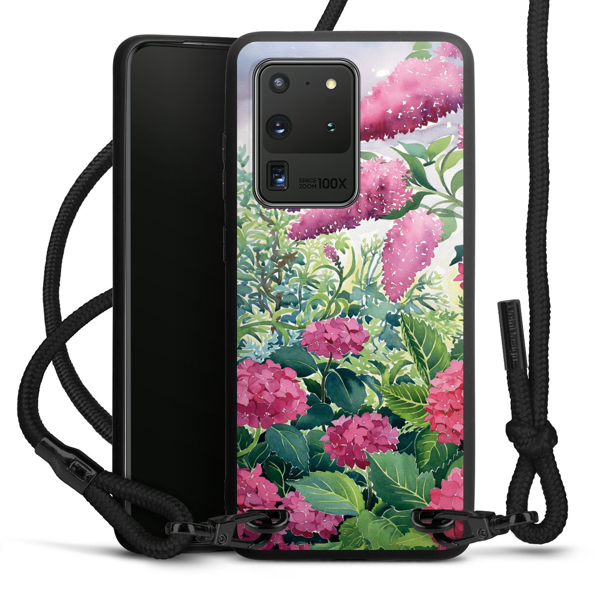 The matt black silicone case is made of flexible TPU (thermoplastic polyurethane) and offers robust protection. The durable, unbreakable material makes the cover flexible and dimensionally stable at the same time. The matte surface makes your design stand out more and is less susceptible to fingerprints and dirt. The stylish trend accessory fits comfortably in the hand and is perfectly complemented by the fabric (polyester) mobile phone strap. The braided fabric strap is approx. 1.70 metres long with a diameter of approx. 0.5 cm. Due to the special knotting technique, the length of the strap can be adjusted by simply pulling it, so that you can adapt it individually to your wishes. The practical case to wear around your neck is available with the fabric strap in black. As a little icing on the cake, we have provided the strap with a chic metal fastener in matt black. The strap is securely fastened to the case with loops made of high-quality genuine leather and press studs. The ends of the fabric strap are covered with metallic end caps and thus protected from fraying.
