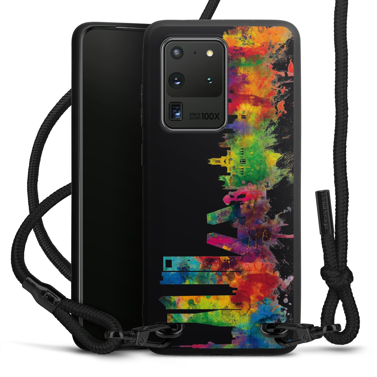 We use the solid direct print process for this phone case, which is why the print area only covers the back and the edge remains unprinted. The case to wear around your neck can be ordered unprinted, fully printed, or partially printed. For your design, either choose one of our exclusive shop motifs or get creative and create your own design, for example with photos and overlays. Design your own personal trend accessory and make an individual statement on the streets!