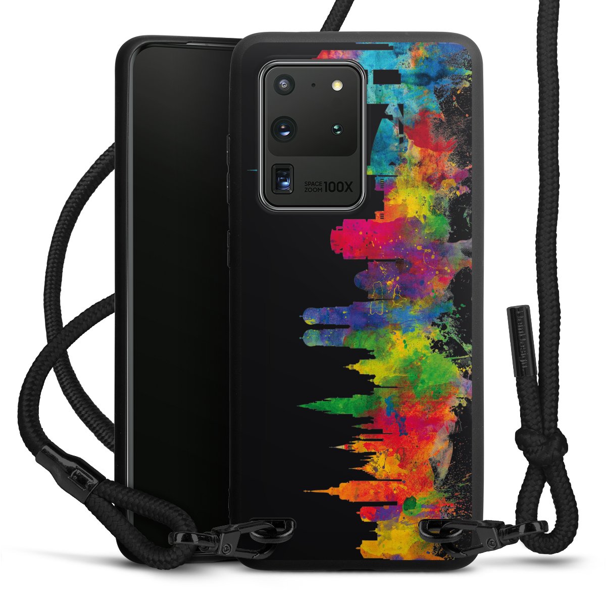 We use the solid direct print process for this phone case, which is why the print area only covers the back and the edge remains unprinted. The case to wear around your neck can be ordered unprinted, fully printed, or partially printed. For your design, either choose one of our exclusive shop motifs or get creative and create your own design, for example with photos and overlays. Design your own personal trend accessory and make an individual statement on the streets!