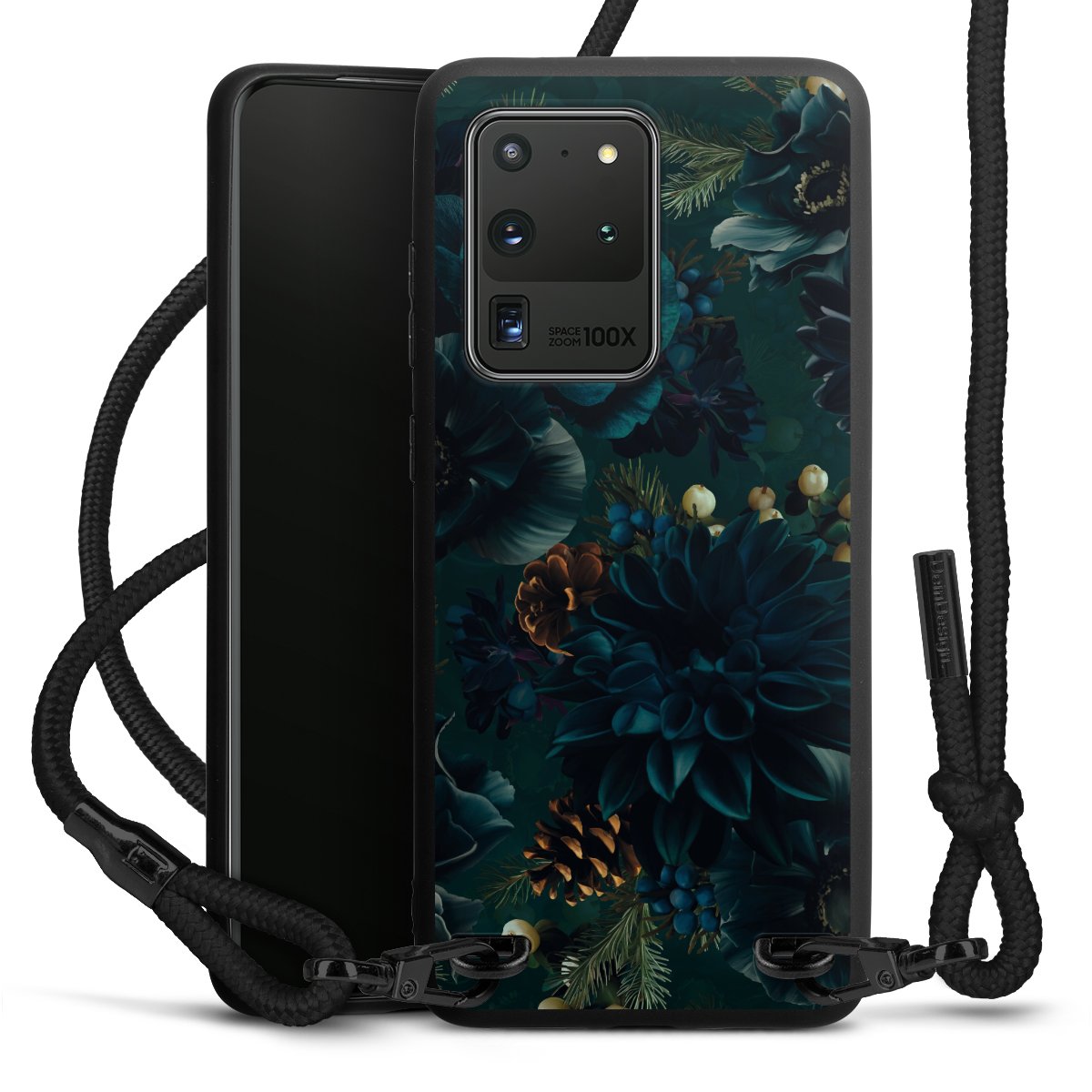 The matt black silicone case is made of flexible TPU (thermoplastic polyurethane) and offers robust protection. The durable, unbreakable material makes the cover flexible and dimensionally stable at the same time. The matte surface makes your design stand out more and is less susceptible to fingerprints and dirt. The stylish trend accessory fits comfortably in the hand and is perfectly complemented by the fabric (polyester) mobile phone strap. The braided fabric strap is approx. 1.70 metres long with a diameter of approx. 0.5 cm. Due to the special knotting technique, the length of the strap can be adjusted by simply pulling it, so that you can adapt it individually to your wishes. The practical case to wear around your neck is available with the fabric strap in black. As a little icing on the cake, we have provided the strap with a chic metal fastener in matt black. The strap is securely fastened to the case with loops made of high-quality genuine leather and press studs. The ends of the fabric strap are covered with metallic end caps and thus protected from fraying.