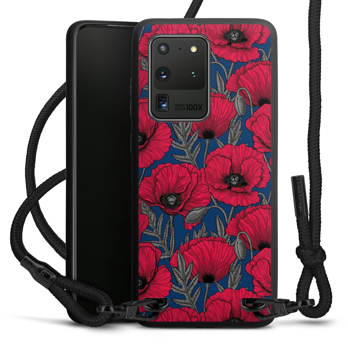 The matt black silicone case is made of flexible TPU (thermoplastic polyurethane) and offers robust protection. The durable, unbreakable material makes the cover flexible and dimensionally stable at the same time. The matte surface makes your design stand out more and is less susceptible to fingerprints and dirt. The stylish trend accessory fits comfortably in the hand and is perfectly complemented by the fabric (polyester) mobile phone strap. The braided fabric strap is approx. 1.70 metres long with a diameter of approx. 0.5 cm. Due to the special knotting technique, the length of the strap can be adjusted by simply pulling it, so that you can adapt it individually to your wishes. The practical case to wear around your neck is available with the fabric strap in black. As a little icing on the cake, we have provided the strap with a chic metal fastener in matt black. The strap is securely fastened to the case with loops made of high-quality genuine leather and press studs. The ends of the fabric strap are covered with metallic end caps and thus protected from fraying.