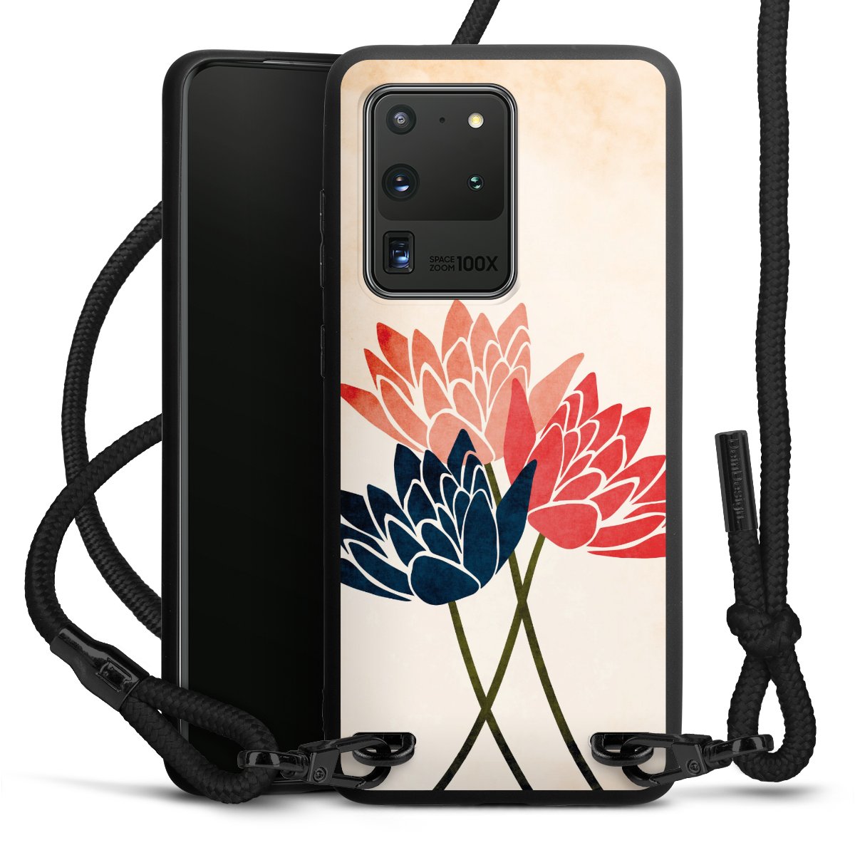 We use the solid direct print process for this phone case, which is why the print area only covers the back and the edge remains unprinted. The case to wear around your neck can be ordered unprinted, fully printed, or partially printed. For your design, either choose one of our exclusive shop motifs or get creative and create your own design, for example with photos and overlays. Design your own personal trend accessory and make an individual statement on the streets!