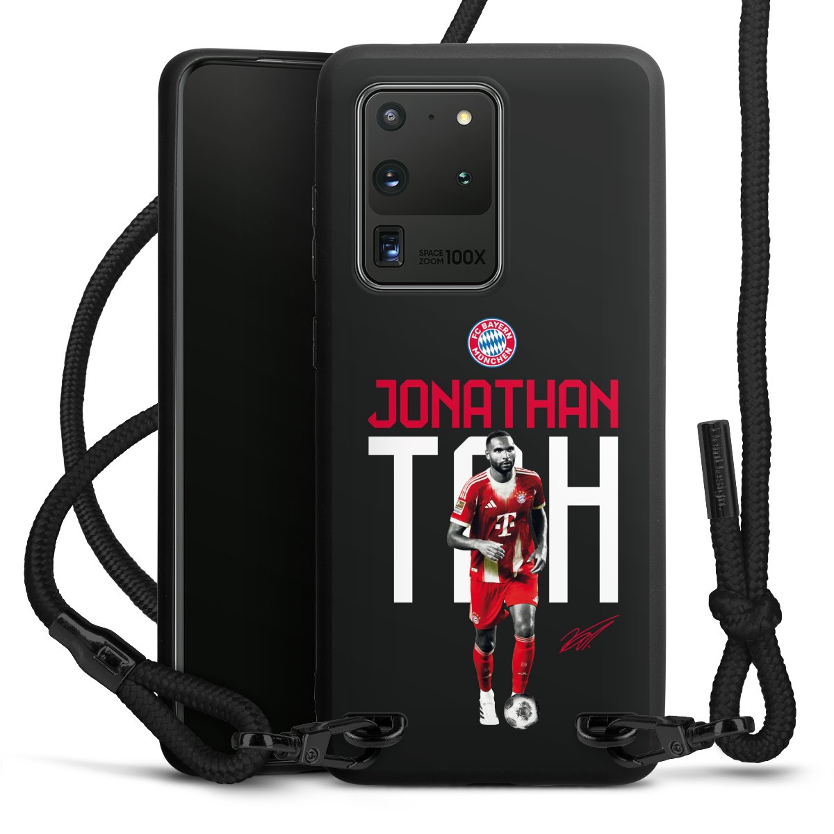 The matt black silicone case is made of flexible TPU (thermoplastic polyurethane) and offers robust protection. The durable, unbreakable material makes the cover flexible and dimensionally stable at the same time. The matte surface makes your design stand out more and is less susceptible to fingerprints and dirt. The stylish trend accessory fits comfortably in the hand and is perfectly complemented by the fabric (polyester) mobile phone strap. The braided fabric strap is approx. 1.70 metres long with a diameter of approx. 0.5 cm. Due to the special knotting technique, the length of the strap can be adjusted by simply pulling it, so that you can adapt it individually to your wishes. The practical case to wear around your neck is available with the fabric strap in black. As a little icing on the cake, we have provided the strap with a chic metal fastener in matt black. The strap is securely fastened to the case with loops made of high-quality genuine leather and press studs. The ends of the fabric strap are covered with metallic end caps and thus protected from fraying.