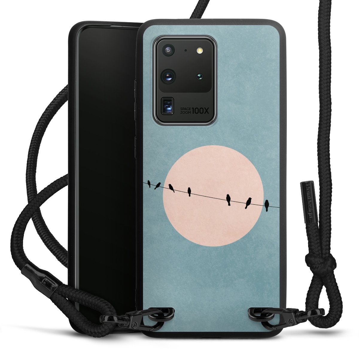 The matt black silicone case is made of flexible TPU (thermoplastic polyurethane) and offers robust protection. The durable, unbreakable material makes the cover flexible and dimensionally stable at the same time. The matte surface makes your design stand out more and is less susceptible to fingerprints and dirt. The stylish trend accessory fits comfortably in the hand and is perfectly complemented by the fabric (polyester) mobile phone strap. The braided fabric strap is approx. 1.70 metres long with a diameter of approx. 0.5 cm. Due to the special knotting technique, the length of the strap can be adjusted by simply pulling it, so that you can adapt it individually to your wishes. The practical case to wear around your neck is available with the fabric strap in black. As a little icing on the cake, we have provided the strap with a chic metal fastener in matt black. The strap is securely fastened to the case with loops made of high-quality genuine leather and press studs. The ends of the fabric strap are covered with metallic end caps and thus protected from fraying.