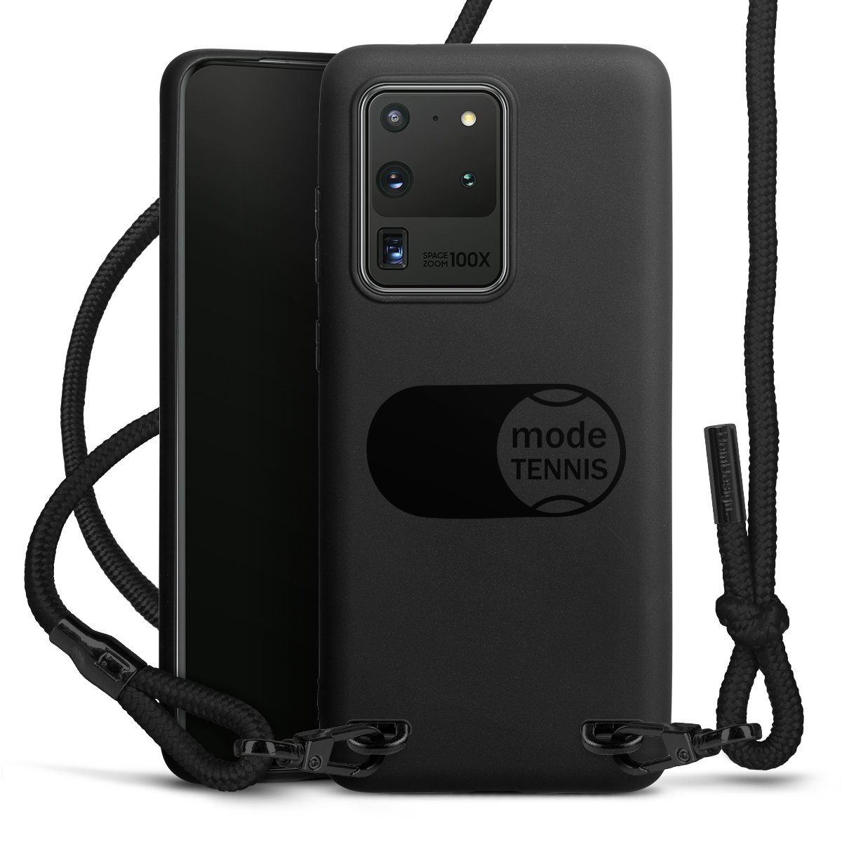 The matt black silicone case is made of flexible TPU (thermoplastic polyurethane) and offers robust protection. The durable, unbreakable material makes the cover flexible and dimensionally stable at the same time. The matte surface makes your design stand out more and is less susceptible to fingerprints and dirt. The stylish trend accessory fits comfortably in the hand and is perfectly complemented by the fabric (polyester) mobile phone strap. The braided fabric strap is approx. 1.70 metres long with a diameter of approx. 0.5 cm. Due to the special knotting technique, the length of the strap can be adjusted by simply pulling it, so that you can adapt it individually to your wishes. The practical case to wear around your neck is available with the fabric strap in black. As a little icing on the cake, we have provided the strap with a chic metal fastener in matt black. The strap is securely fastened to the case with loops made of high-quality genuine leather and press studs. The ends of the fabric strap are covered with metallic end caps and thus protected from fraying.