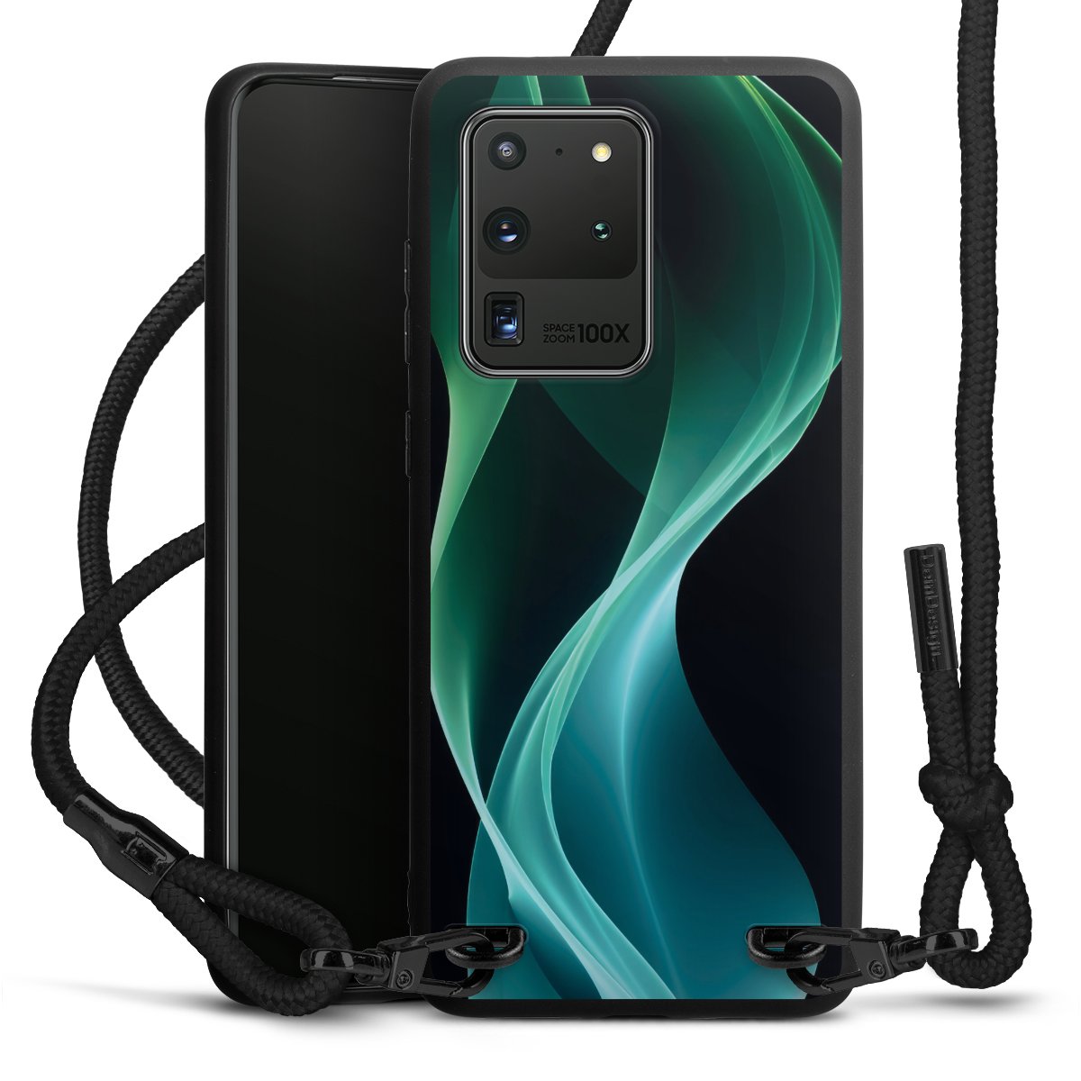 The matt black silicone case is made of flexible TPU (thermoplastic polyurethane) and offers robust protection. The durable, unbreakable material makes the cover flexible and dimensionally stable at the same time. The matte surface makes your design stand out more and is less susceptible to fingerprints and dirt. The stylish trend accessory fits comfortably in the hand and is perfectly complemented by the fabric (polyester) mobile phone strap. The braided fabric strap is approx. 1.70 metres long with a diameter of approx. 0.5 cm. Due to the special knotting technique, the length of the strap can be adjusted by simply pulling it, so that you can adapt it individually to your wishes. The practical case to wear around your neck is available with the fabric strap in black. As a little icing on the cake, we have provided the strap with a chic metal fastener in matt black. The strap is securely fastened to the case with loops made of high-quality genuine leather and press studs. The ends of the fabric strap are covered with metallic end caps and thus protected from fraying.