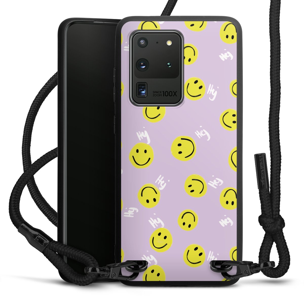 We use the solid direct print process for this phone case, which is why the print area only covers the back and the edge remains unprinted. The case to wear around your neck can be ordered unprinted, fully printed, or partially printed. For your design, either choose one of our exclusive shop motifs or get creative and create your own design, for example with photos and overlays. Design your own personal trend accessory and make an individual statement on the streets!