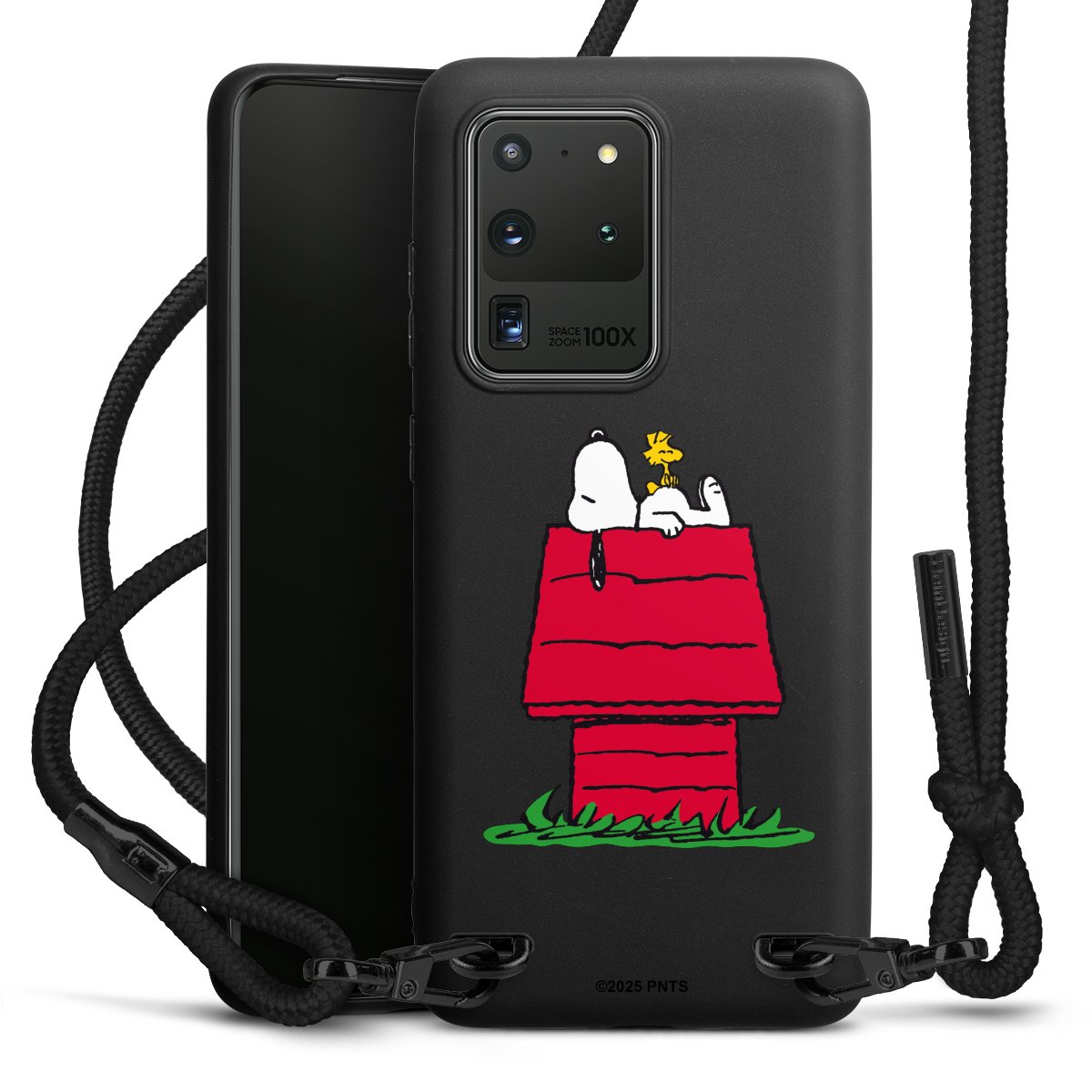 The matt black silicone case is made of flexible TPU (thermoplastic polyurethane) and offers robust protection. The durable, unbreakable material makes the cover flexible and dimensionally stable at the same time. The matte surface makes your design stand out more and is less susceptible to fingerprints and dirt. The stylish trend accessory fits comfortably in the hand and is perfectly complemented by the fabric (polyester) mobile phone strap. The braided fabric strap is approx. 1.70 metres long with a diameter of approx. 0.5 cm. Due to the special knotting technique, the length of the strap can be adjusted by simply pulling it, so that you can adapt it individually to your wishes. The practical case to wear around your neck is available with the fabric strap in black. As a little icing on the cake, we have provided the strap with a chic metal fastener in matt black. The strap is securely fastened to the case with loops made of high-quality genuine leather and press studs. The ends of the fabric strap are covered with metallic end caps and thus protected from fraying.