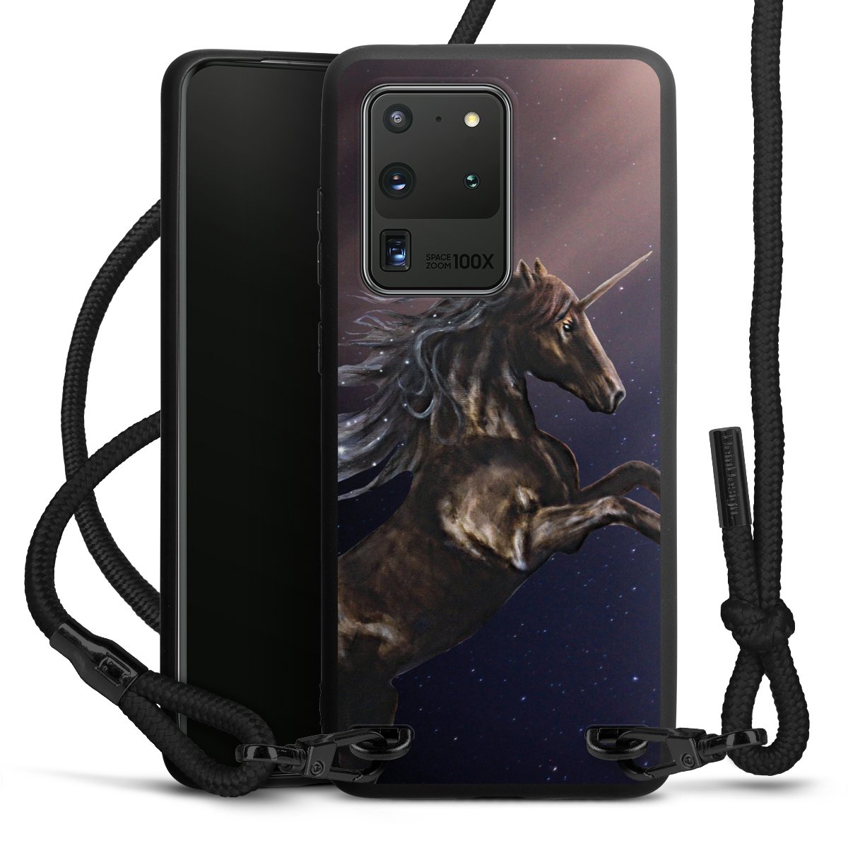 The matt black silicone case is made of flexible TPU (thermoplastic polyurethane) and offers robust protection. The durable, unbreakable material makes the cover flexible and dimensionally stable at the same time. The matte surface makes your design stand out more and is less susceptible to fingerprints and dirt. The stylish trend accessory fits comfortably in the hand and is perfectly complemented by the fabric (polyester) mobile phone strap. The braided fabric strap is approx. 1.70 metres long with a diameter of approx. 0.5 cm. Due to the special knotting technique, the length of the strap can be adjusted by simply pulling it, so that you can adapt it individually to your wishes. The practical case to wear around your neck is available with the fabric strap in black. As a little icing on the cake, we have provided the strap with a chic metal fastener in matt black. The strap is securely fastened to the case with loops made of high-quality genuine leather and press studs. The ends of the fabric strap are covered with metallic end caps and thus protected from fraying.