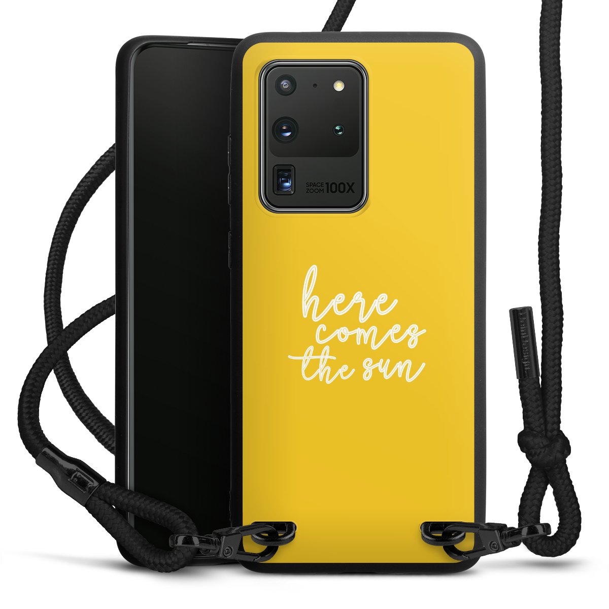 We use the solid direct print process for this phone case, which is why the print area only covers the back and the edge remains unprinted. The case to wear around your neck can be ordered unprinted, fully printed, or partially printed. For your design, either choose one of our exclusive shop motifs or get creative and create your own design, for example with photos and overlays. Design your own personal trend accessory and make an individual statement on the streets!