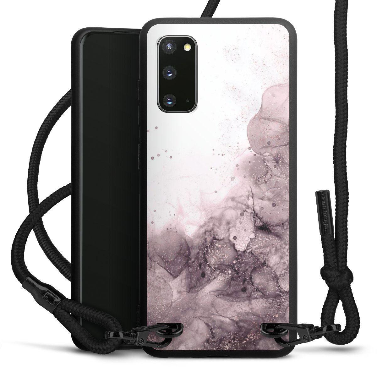 The matt black silicone case is made of flexible TPU (thermoplastic polyurethane) and offers robust protection. The durable, unbreakable material makes the cover flexible and dimensionally stable at the same time. The matte surface makes your design stand out more and is less susceptible to fingerprints and dirt. The stylish trend accessory fits comfortably in the hand and is perfectly complemented by the fabric (polyester) mobile phone strap. The braided fabric strap is approx. 1.70 metres long with a diameter of approx. 0.5 cm. Due to the special knotting technique, the length of the strap can be adjusted by simply pulling it, so that you can adapt it individually to your wishes. The practical case to wear around your neck is available with the fabric strap in black. As a little icing on the cake, we have provided the strap with a chic metal fastener in matt black. The strap is securely fastened to the case with loops made of high-quality genuine leather and press studs. The ends of the fabric strap are covered with metallic end caps and thus protected from fraying.