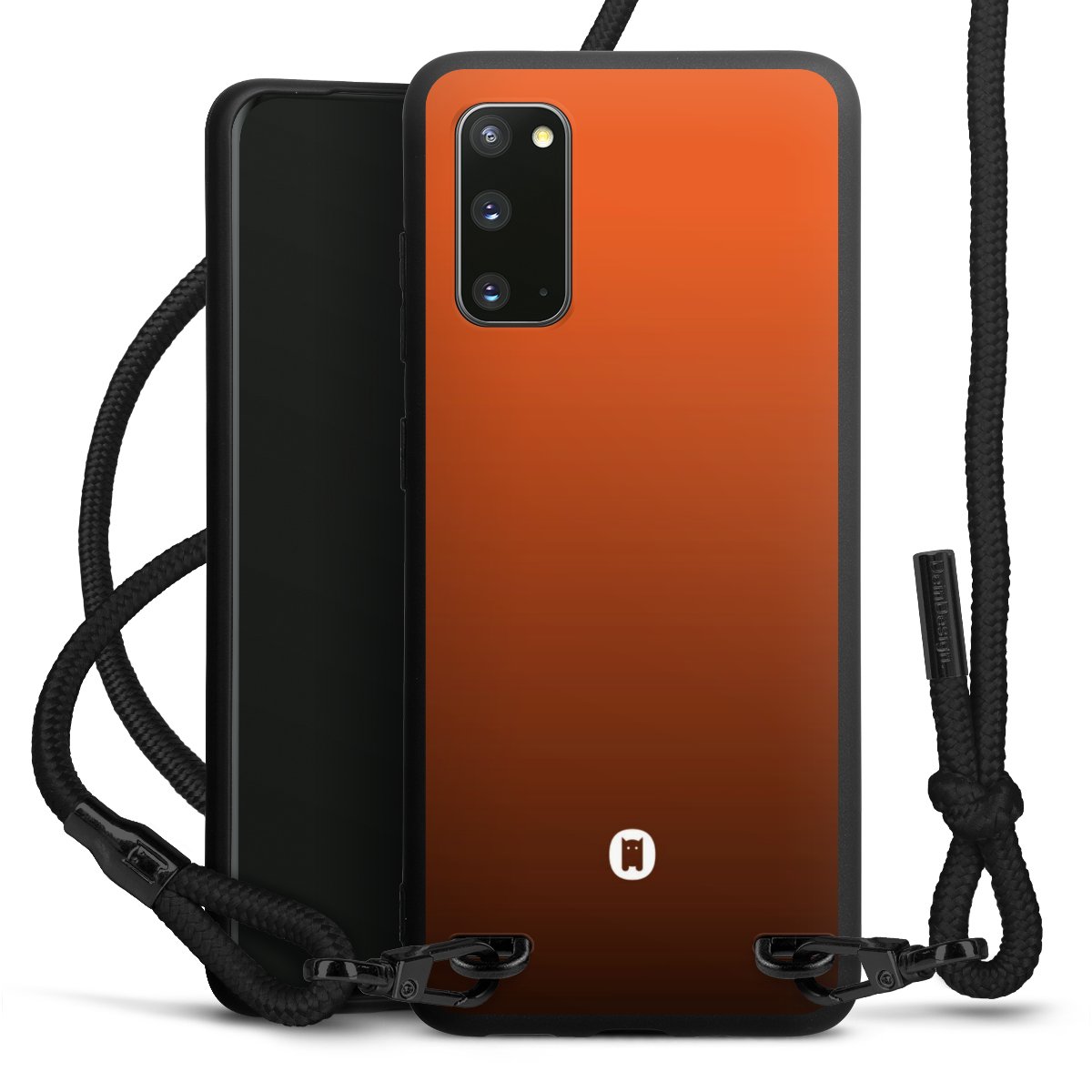 The matt black silicone case is made of flexible TPU (thermoplastic polyurethane) and offers robust protection. The durable, unbreakable material makes the cover flexible and dimensionally stable at the same time. The matte surface makes your design stand out more and is less susceptible to fingerprints and dirt. The stylish trend accessory fits comfortably in the hand and is perfectly complemented by the fabric (polyester) mobile phone strap. The braided fabric strap is approx. 1.70 metres long with a diameter of approx. 0.5 cm. Due to the special knotting technique, the length of the strap can be adjusted by simply pulling it, so that you can adapt it individually to your wishes. The practical case to wear around your neck is available with the fabric strap in black. As a little icing on the cake, we have provided the strap with a chic metal fastener in matt black. The strap is securely fastened to the case with loops made of high-quality genuine leather and press studs. The ends of the fabric strap are covered with metallic end caps and thus protected from fraying.