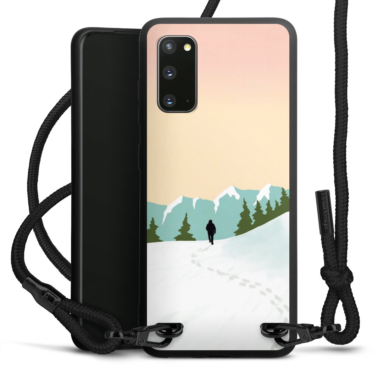 We use the solid direct print process for this phone case, which is why the print area only covers the back and the edge remains unprinted. The case to wear around your neck can be ordered unprinted, fully printed, or partially printed. For your design, either choose one of our exclusive shop motifs or get creative and create your own design, for example with photos and overlays. Design your own personal trend accessory and make an individual statement on the streets!