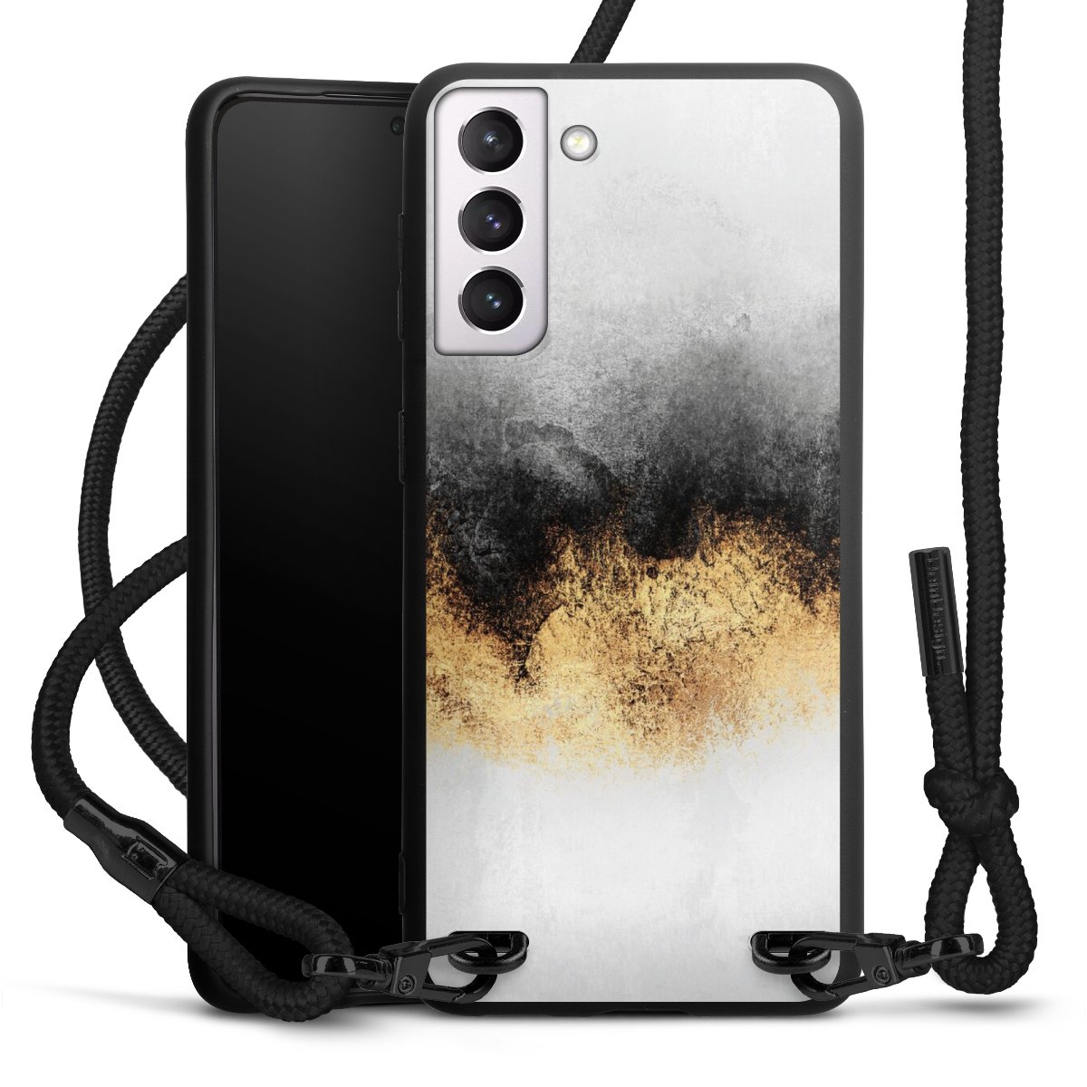The matt black silicone case is made of flexible TPU (thermoplastic polyurethane) and offers robust protection. The durable, unbreakable material makes the cover flexible and dimensionally stable at the same time. The matte surface makes your design stand out more and is less susceptible to fingerprints and dirt. The stylish trend accessory fits comfortably in the hand and is perfectly complemented by the fabric (polyester) mobile phone strap. The braided fabric strap is approx. 1.70 metres long with a diameter of approx. 0.5 cm. Due to the special knotting technique, the length of the strap can be adjusted by simply pulling it, so that you can adapt it individually to your wishes. The practical case to wear around your neck is available with the fabric strap in black. As a little icing on the cake, we have provided the strap with a chic metal fastener in matt black. The strap is securely fastened to the case with loops made of high-quality genuine leather and press studs. The ends of the fabric strap are covered with metallic end caps and thus protected from fraying.
