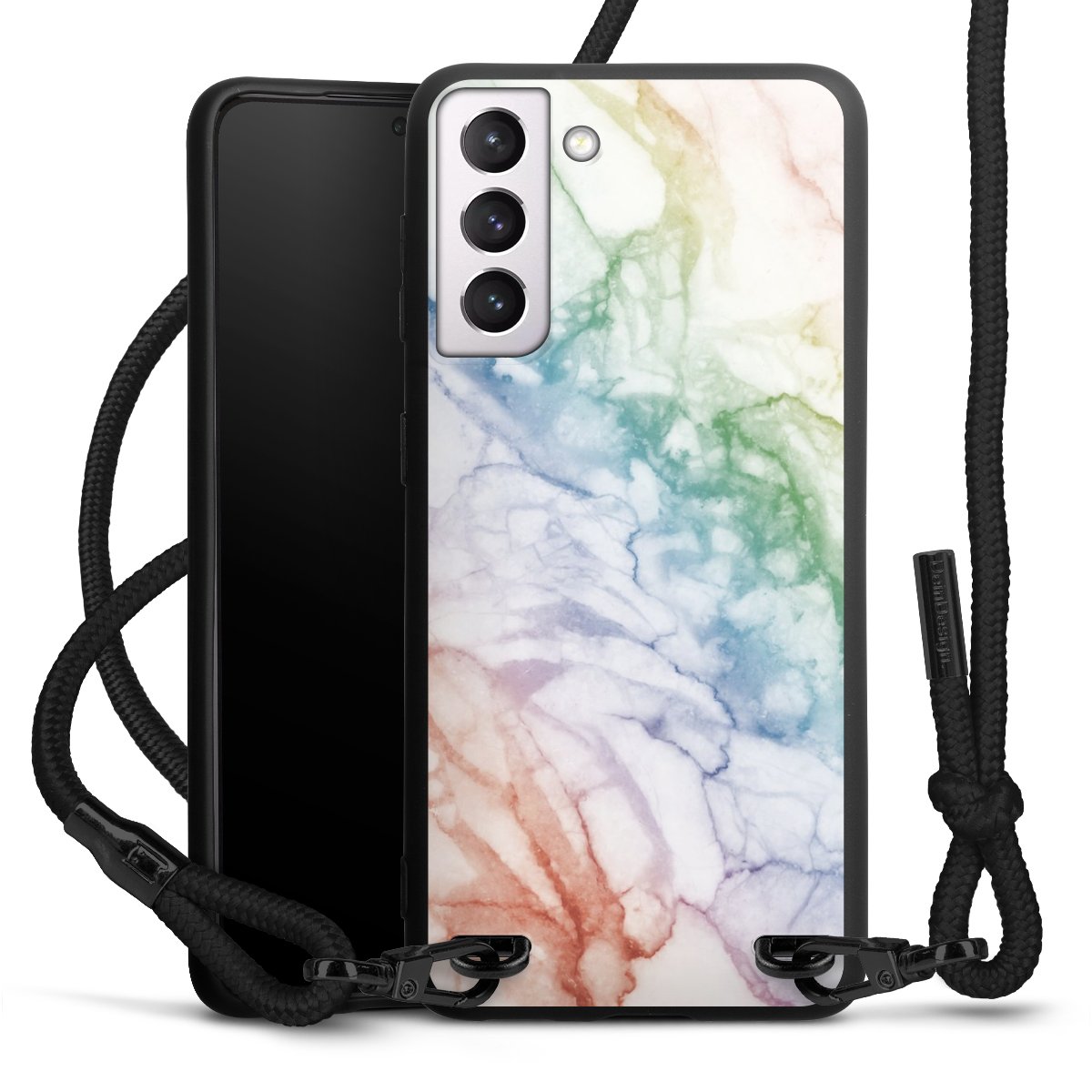 We use the solid direct print process for this phone case, which is why the print area only covers the back and the edge remains unprinted. The case to wear around your neck can be ordered unprinted, fully printed, or partially printed. For your design, either choose one of our exclusive shop motifs or get creative and create your own design, for example with photos and overlays. Design your own personal trend accessory and make an individual statement on the streets!