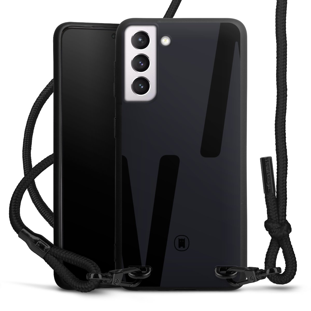 The matt black silicone case is made of flexible TPU (thermoplastic polyurethane) and offers robust protection. The durable, unbreakable material makes the cover flexible and dimensionally stable at the same time. The matte surface makes your design stand out more and is less susceptible to fingerprints and dirt. The stylish trend accessory fits comfortably in the hand and is perfectly complemented by the fabric (polyester) mobile phone strap. The braided fabric strap is approx. 1.70 metres long with a diameter of approx. 0.5 cm. Due to the special knotting technique, the length of the strap can be adjusted by simply pulling it, so that you can adapt it individually to your wishes. The practical case to wear around your neck is available with the fabric strap in black. As a little icing on the cake, we have provided the strap with a chic metal fastener in matt black. The strap is securely fastened to the case with loops made of high-quality genuine leather and press studs. The ends of the fabric strap are covered with metallic end caps and thus protected from fraying.