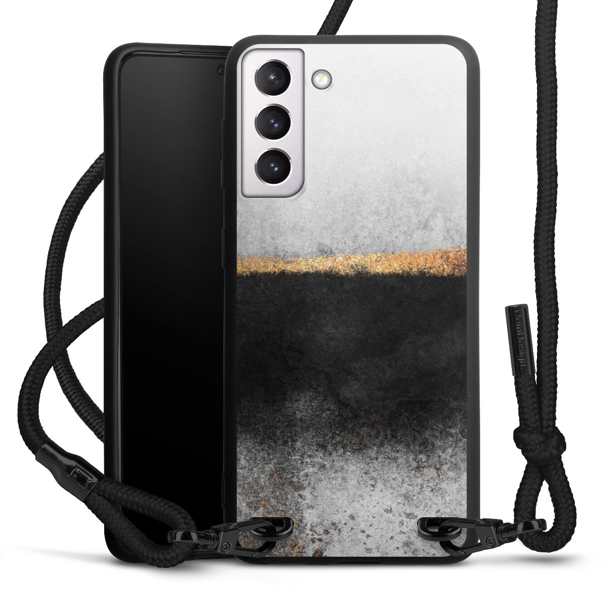 The matt black silicone case is made of flexible TPU (thermoplastic polyurethane) and offers robust protection. The durable, unbreakable material makes the cover flexible and dimensionally stable at the same time. The matte surface makes your design stand out more and is less susceptible to fingerprints and dirt. The stylish trend accessory fits comfortably in the hand and is perfectly complemented by the fabric (polyester) mobile phone strap. The braided fabric strap is approx. 1.70 metres long with a diameter of approx. 0.5 cm. Due to the special knotting technique, the length of the strap can be adjusted by simply pulling it, so that you can adapt it individually to your wishes. The practical case to wear around your neck is available with the fabric strap in black. As a little icing on the cake, we have provided the strap with a chic metal fastener in matt black. The strap is securely fastened to the case with loops made of high-quality genuine leather and press studs. The ends of the fabric strap are covered with metallic end caps and thus protected from fraying.