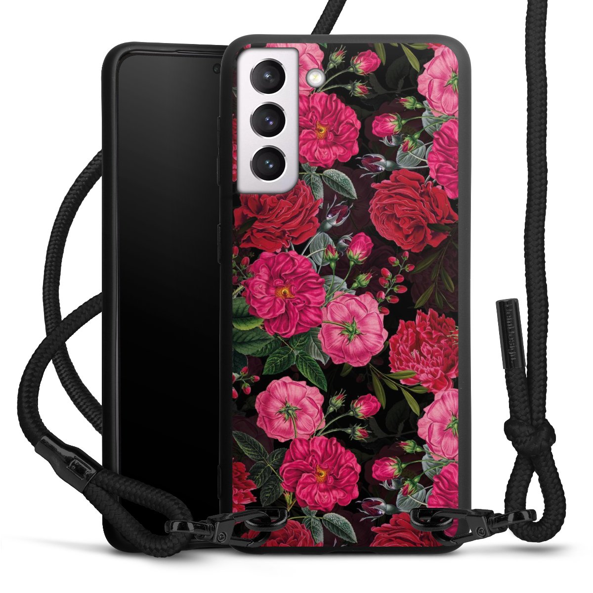 The matt black silicone case is made of flexible TPU (thermoplastic polyurethane) and offers robust protection. The durable, unbreakable material makes the cover flexible and dimensionally stable at the same time. The matte surface makes your design stand out more and is less susceptible to fingerprints and dirt. The stylish trend accessory fits comfortably in the hand and is perfectly complemented by the fabric (polyester) mobile phone strap. The braided fabric strap is approx. 1.70 metres long with a diameter of approx. 0.5 cm. Due to the special knotting technique, the length of the strap can be adjusted by simply pulling it, so that you can adapt it individually to your wishes. The practical case to wear around your neck is available with the fabric strap in black. As a little icing on the cake, we have provided the strap with a chic metal fastener in matt black. The strap is securely fastened to the case with loops made of high-quality genuine leather and press studs. The ends of the fabric strap are covered with metallic end caps and thus protected from fraying.