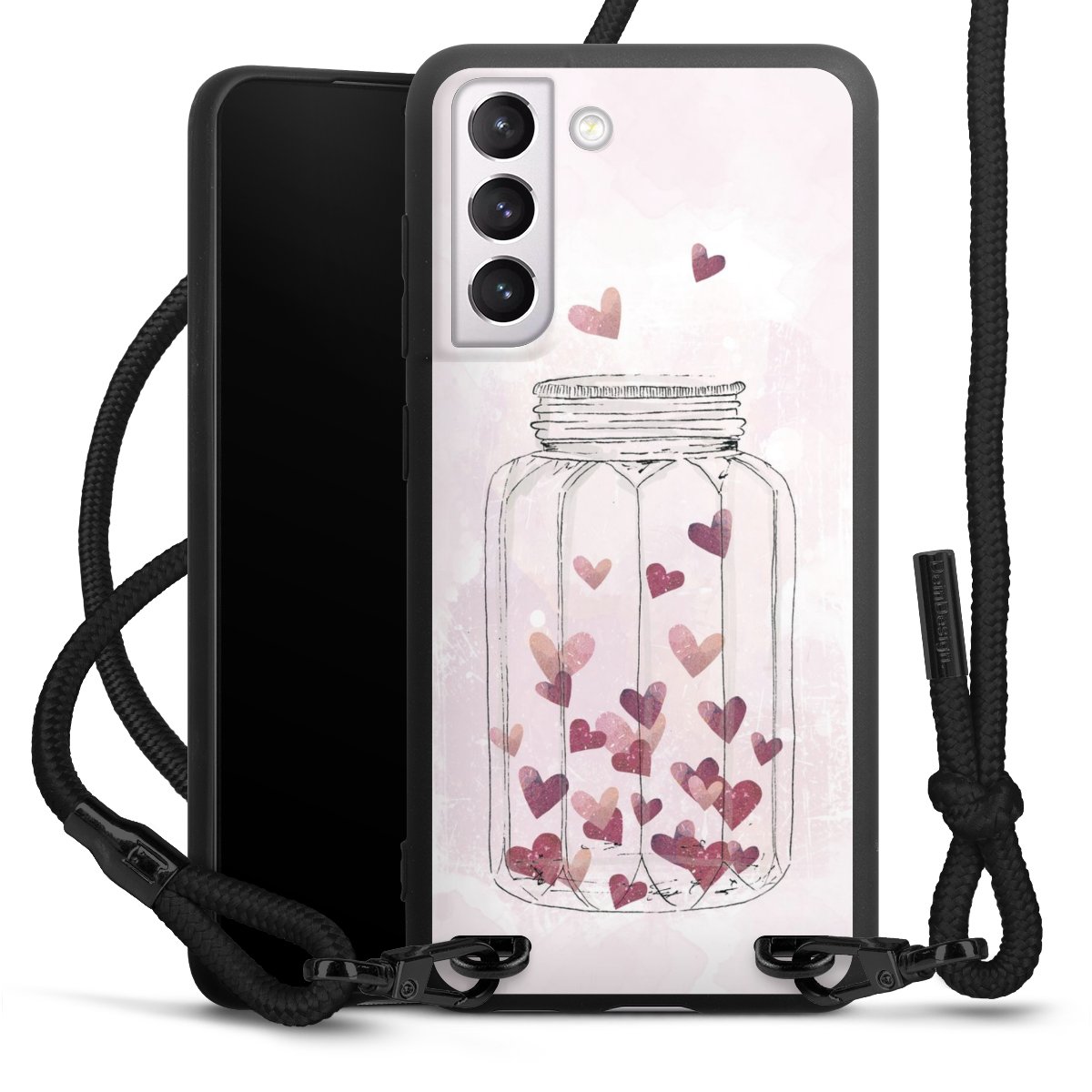 The matt black silicone case is made of flexible TPU (thermoplastic polyurethane) and offers robust protection. The durable, unbreakable material makes the cover flexible and dimensionally stable at the same time. The matte surface makes your design stand out more and is less susceptible to fingerprints and dirt. The stylish trend accessory fits comfortably in the hand and is perfectly complemented by the fabric (polyester) mobile phone strap. The braided fabric strap is approx. 1.70 metres long with a diameter of approx. 0.5 cm. Due to the special knotting technique, the length of the strap can be adjusted by simply pulling it, so that you can adapt it individually to your wishes. The practical case to wear around your neck is available with the fabric strap in black. As a little icing on the cake, we have provided the strap with a chic metal fastener in matt black. The strap is securely fastened to the case with loops made of high-quality genuine leather and press studs. The ends of the fabric strap are covered with metallic end caps and thus protected from fraying.