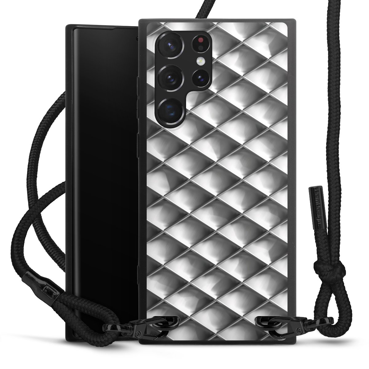 Pure Black: Phone case, fabric strap and metal details in stylish matt black.