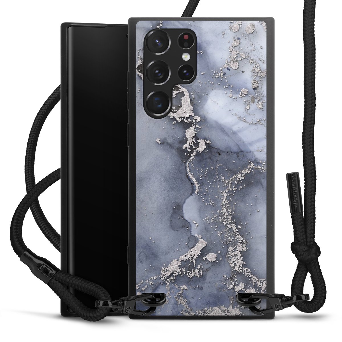 The matt black silicone case is made of flexible TPU (thermoplastic polyurethane) and offers robust protection. The durable, unbreakable material makes the cover flexible and dimensionally stable at the same time. The matte surface makes your design stand out more and is less susceptible to fingerprints and dirt. The stylish trend accessory fits comfortably in the hand and is perfectly complemented by the fabric (polyester) mobile phone strap. The braided fabric strap is approx. 1.70 metres long with a diameter of approx. 0.5 cm. Due to the special knotting technique, the length of the strap can be adjusted by simply pulling it, so that you can adapt it individually to your wishes. The practical case to wear around your neck is available with the fabric strap in black. As a little icing on the cake, we have provided the strap with a chic metal fastener in matt black. The strap is securely fastened to the case with loops made of high-quality genuine leather and press studs. The ends of the fabric strap are covered with metallic end caps and thus protected from fraying.