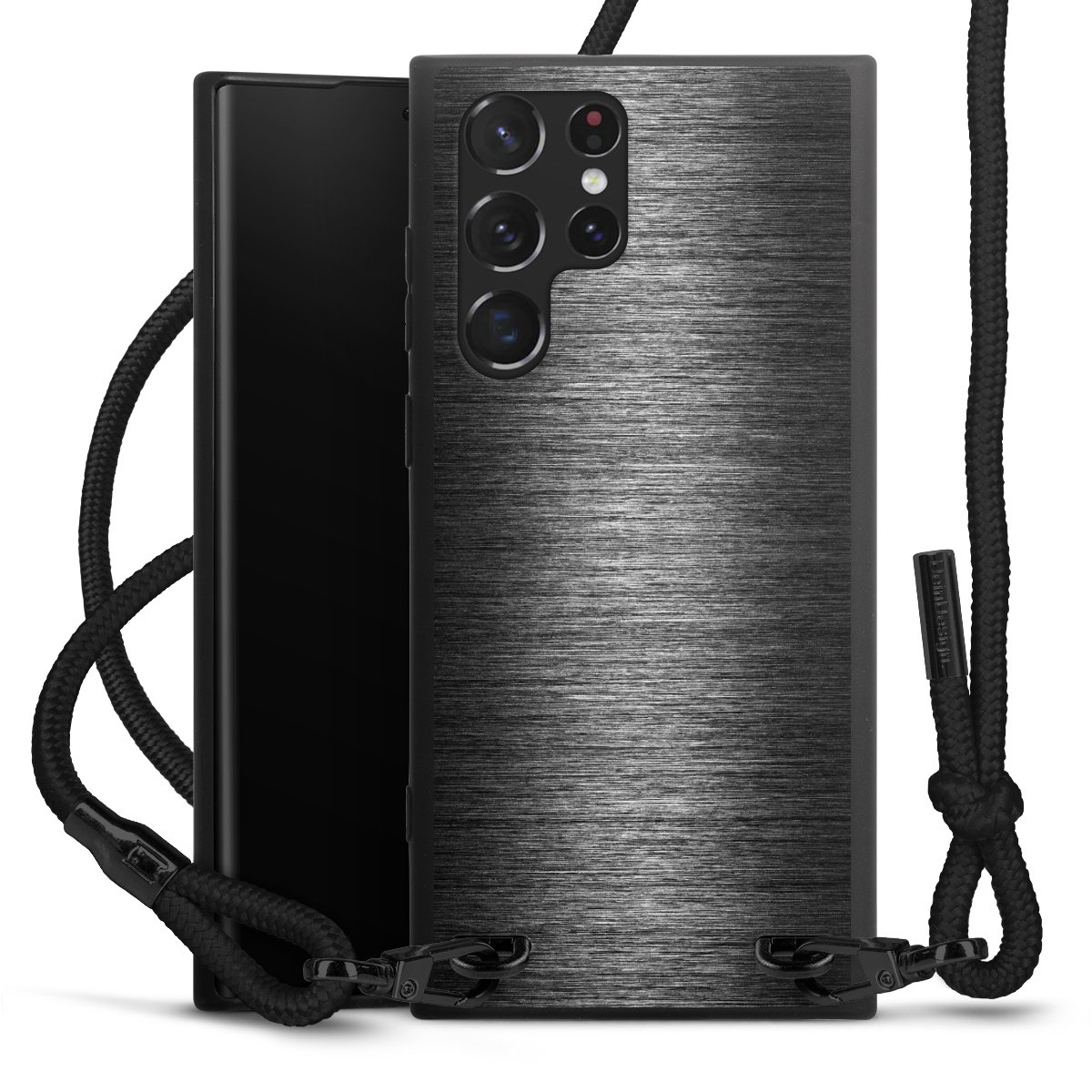 Pure Black: Phone case, fabric strap and metal details in stylish matt black.