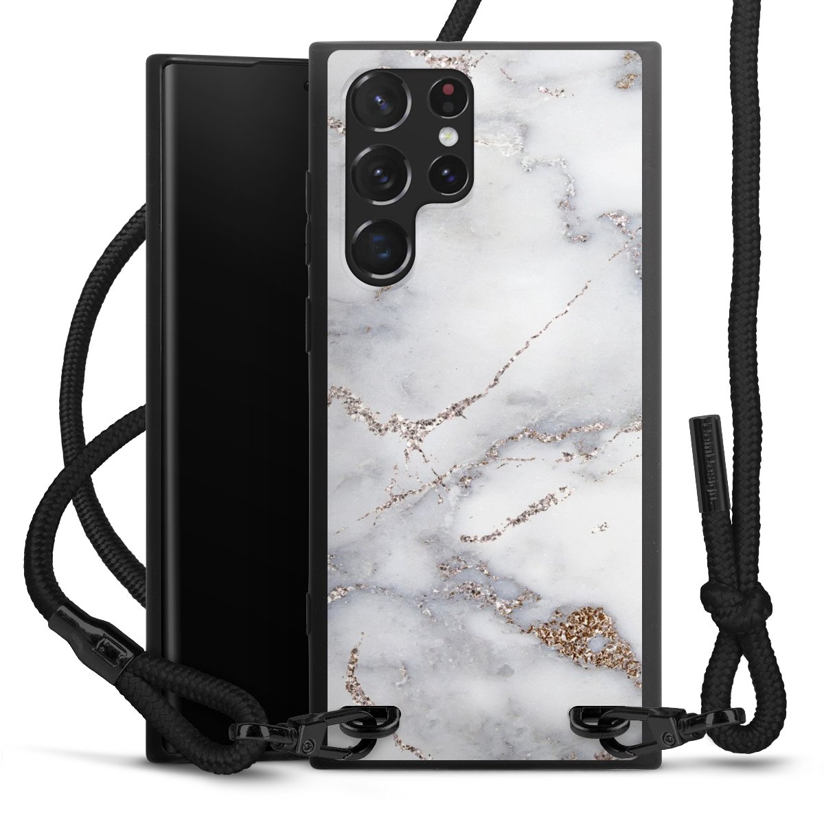 The matt black silicone case is made of flexible TPU (thermoplastic polyurethane) and offers robust protection. The durable, unbreakable material makes the cover flexible and dimensionally stable at the same time. The matte surface makes your design stand out more and is less susceptible to fingerprints and dirt. The stylish trend accessory fits comfortably in the hand and is perfectly complemented by the fabric (polyester) mobile phone strap. The braided fabric strap is approx. 1.70 metres long with a diameter of approx. 0.5 cm. Due to the special knotting technique, the length of the strap can be adjusted by simply pulling it, so that you can adapt it individually to your wishes. The practical case to wear around your neck is available with the fabric strap in black. As a little icing on the cake, we have provided the strap with a chic metal fastener in matt black. The strap is securely fastened to the case with loops made of high-quality genuine leather and press studs. The ends of the fabric strap are covered with metallic end caps and thus protected from fraying.