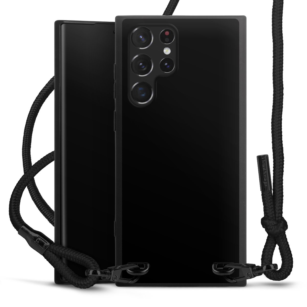 The matt black silicone case is made of flexible TPU (thermoplastic polyurethane) and offers robust protection. The durable, unbreakable material makes the cover flexible and dimensionally stable at the same time. The matte surface makes your design stand out more and is less susceptible to fingerprints and dirt. The stylish trend accessory fits comfortably in the hand and is perfectly complemented by the fabric (polyester) mobile phone strap. The braided fabric strap is approx. 1.70 metres long with a diameter of approx. 0.5 cm. Due to the special knotting technique, the length of the strap can be adjusted by simply pulling it, so that you can adapt it individually to your wishes. The practical case to wear around your neck is available with the fabric strap in black. As a little icing on the cake, we have provided the strap with a chic metal fastener in matt black. The strap is securely fastened to the case with loops made of high-quality genuine leather and press studs. The ends of the fabric strap are covered with metallic end caps and thus protected from fraying.