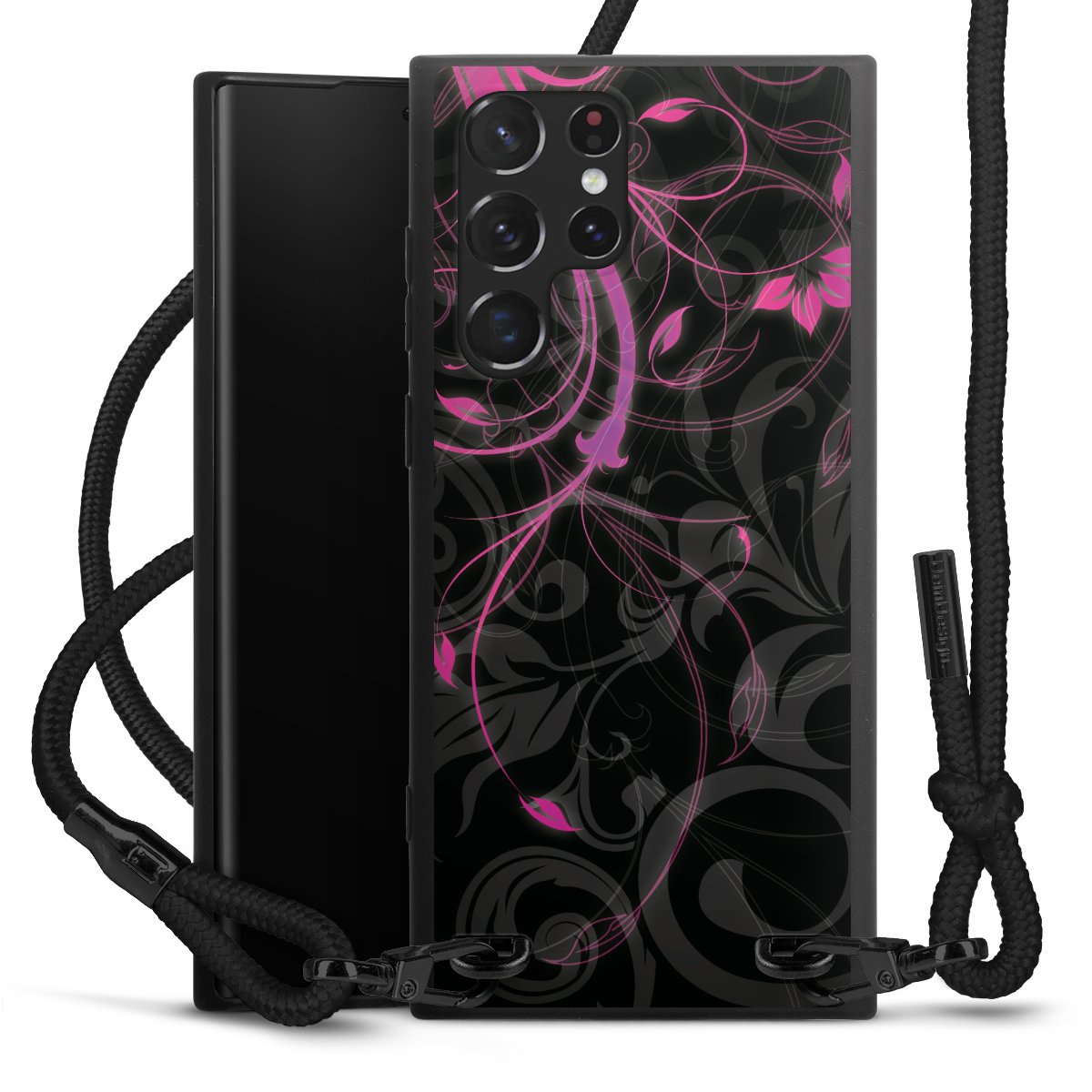 The matt black silicone case is made of flexible TPU (thermoplastic polyurethane) and offers robust protection. The durable, unbreakable material makes the cover flexible and dimensionally stable at the same time. The matte surface makes your design stand out more and is less susceptible to fingerprints and dirt. The stylish trend accessory fits comfortably in the hand and is perfectly complemented by the fabric (polyester) mobile phone strap. The braided fabric strap is approx. 1.70 metres long with a diameter of approx. 0.5 cm. Due to the special knotting technique, the length of the strap can be adjusted by simply pulling it, so that you can adapt it individually to your wishes. The practical case to wear around your neck is available with the fabric strap in black. As a little icing on the cake, we have provided the strap with a chic metal fastener in matt black. The strap is securely fastened to the case with loops made of high-quality genuine leather and press studs. The ends of the fabric strap are covered with metallic end caps and thus protected from fraying.
