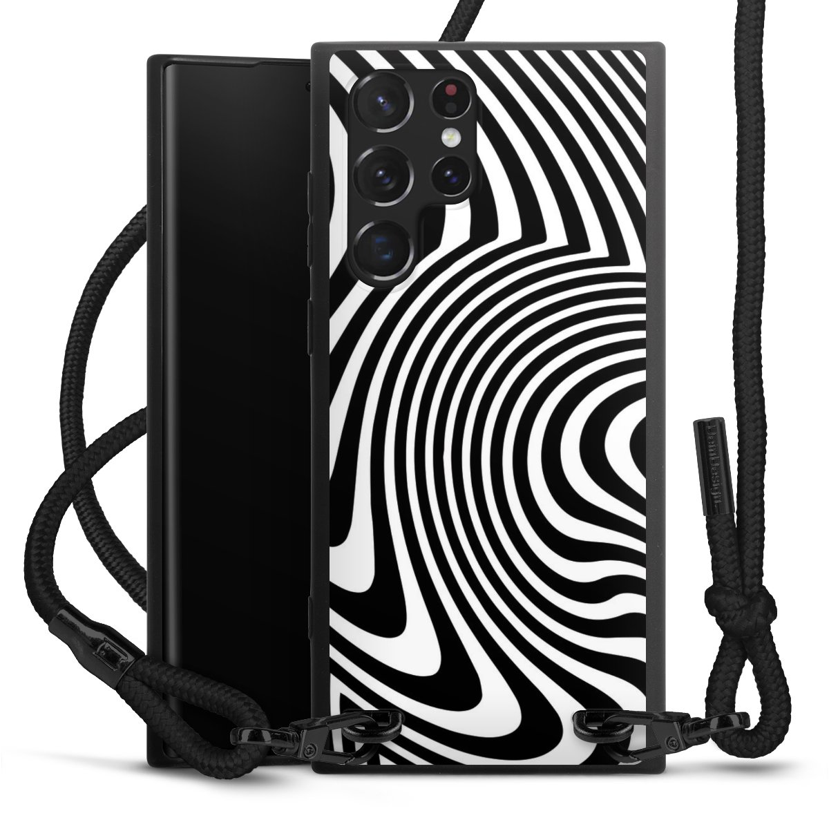 The matt black silicone case is made of flexible TPU (thermoplastic polyurethane) and offers robust protection. The durable, unbreakable material makes the cover flexible and dimensionally stable at the same time. The matte surface makes your design stand out more and is less susceptible to fingerprints and dirt. The stylish trend accessory fits comfortably in the hand and is perfectly complemented by the fabric (polyester) mobile phone strap. The braided fabric strap is approx. 1.70 metres long with a diameter of approx. 0.5 cm. Due to the special knotting technique, the length of the strap can be adjusted by simply pulling it, so that you can adapt it individually to your wishes. The practical case to wear around your neck is available with the fabric strap in black. As a little icing on the cake, we have provided the strap with a chic metal fastener in matt black. The strap is securely fastened to the case with loops made of high-quality genuine leather and press studs. The ends of the fabric strap are covered with metallic end caps and thus protected from fraying.