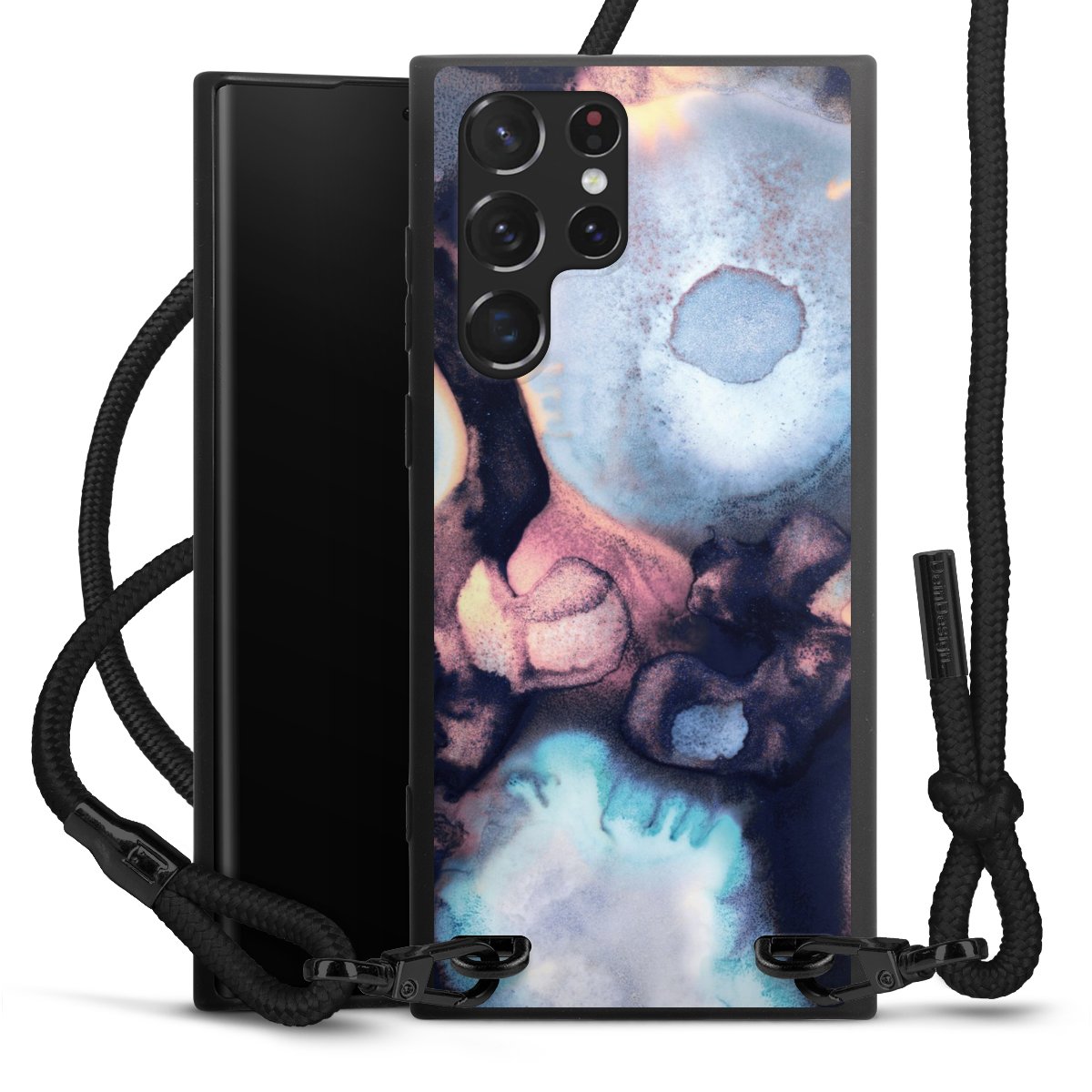 We use the solid direct print process for this phone case, which is why the print area only covers the back and the edge remains unprinted. The case to wear around your neck can be ordered unprinted, fully printed, or partially printed. For your design, either choose one of our exclusive shop motifs or get creative and create your own design, for example with photos and overlays. Design your own personal trend accessory and make an individual statement on the streets!