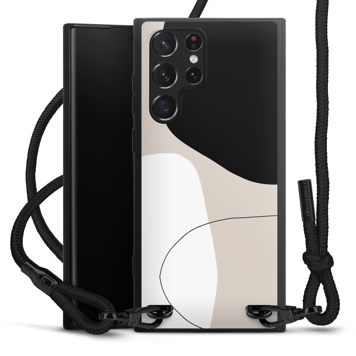 The matt black silicone case is made of flexible TPU (thermoplastic polyurethane) and offers robust protection. The durable, unbreakable material makes the cover flexible and dimensionally stable at the same time. The matte surface makes your design stand out more and is less susceptible to fingerprints and dirt. The stylish trend accessory fits comfortably in the hand and is perfectly complemented by the fabric (polyester) mobile phone strap. The braided fabric strap is approx. 1.70 metres long with a diameter of approx. 0.5 cm. Due to the special knotting technique, the length of the strap can be adjusted by simply pulling it, so that you can adapt it individually to your wishes. The practical case to wear around your neck is available with the fabric strap in black. As a little icing on the cake, we have provided the strap with a chic metal fastener in matt black. The strap is securely fastened to the case with loops made of high-quality genuine leather and press studs. The ends of the fabric strap are covered with metallic end caps and thus protected from fraying.