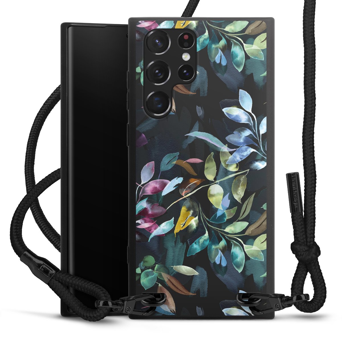 The matt black silicone case is made of flexible TPU (thermoplastic polyurethane) and offers robust protection. The durable, unbreakable material makes the cover flexible and dimensionally stable at the same time. The matte surface makes your design stand out more and is less susceptible to fingerprints and dirt. The stylish trend accessory fits comfortably in the hand and is perfectly complemented by the fabric (polyester) mobile phone strap. The braided fabric strap is approx. 1.70 metres long with a diameter of approx. 0.5 cm. Due to the special knotting technique, the length of the strap can be adjusted by simply pulling it, so that you can adapt it individually to your wishes. The practical case to wear around your neck is available with the fabric strap in black. As a little icing on the cake, we have provided the strap with a chic metal fastener in matt black. The strap is securely fastened to the case with loops made of high-quality genuine leather and press studs. The ends of the fabric strap are covered with metallic end caps and thus protected from fraying.