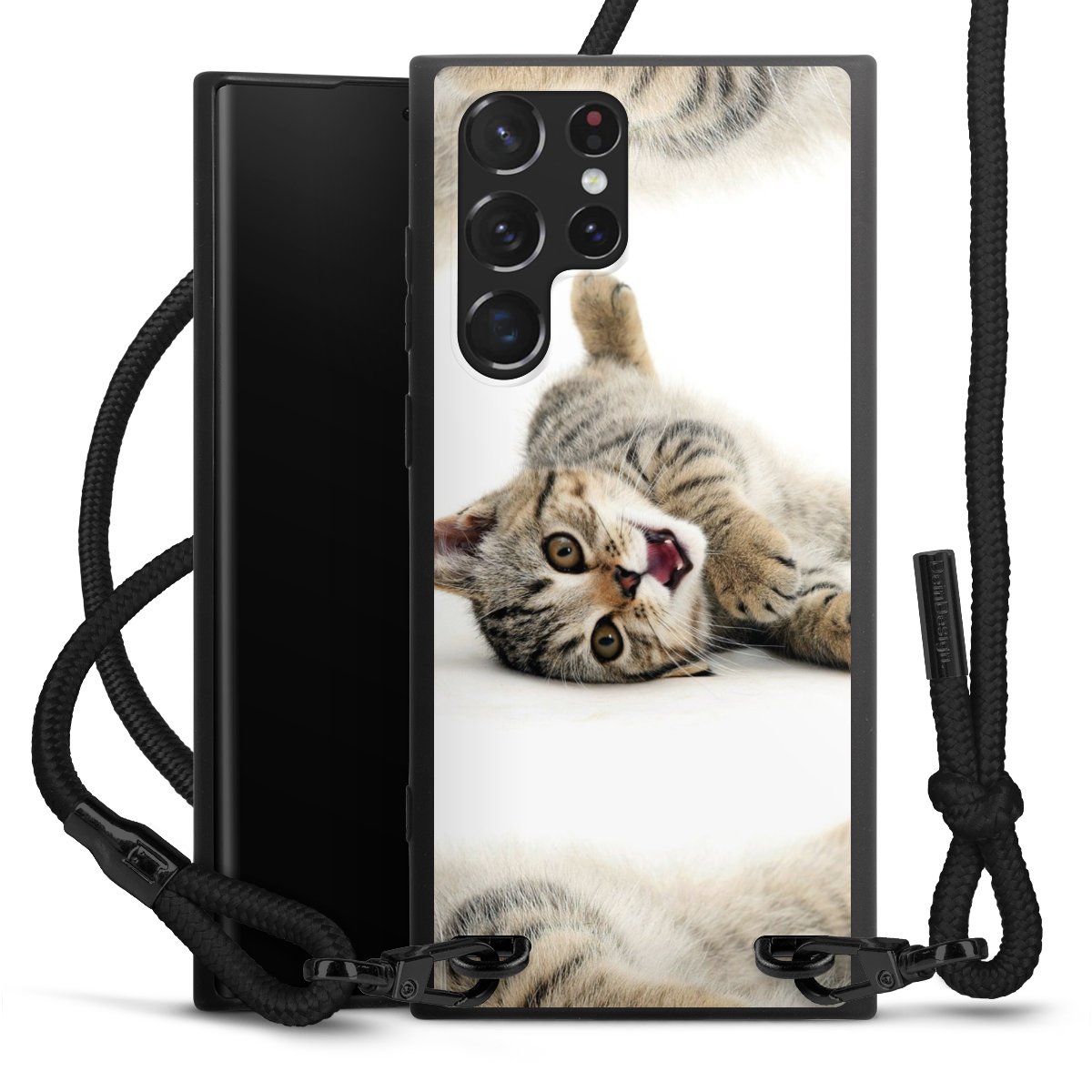 The matt black silicone case is made of flexible TPU (thermoplastic polyurethane) and offers robust protection. The durable, unbreakable material makes the cover flexible and dimensionally stable at the same time. The matte surface makes your design stand out more and is less susceptible to fingerprints and dirt. The stylish trend accessory fits comfortably in the hand and is perfectly complemented by the fabric (polyester) mobile phone strap. The braided fabric strap is approx. 1.70 metres long with a diameter of approx. 0.5 cm. Due to the special knotting technique, the length of the strap can be adjusted by simply pulling it, so that you can adapt it individually to your wishes. The practical case to wear around your neck is available with the fabric strap in black. As a little icing on the cake, we have provided the strap with a chic metal fastener in matt black. The strap is securely fastened to the case with loops made of high-quality genuine leather and press studs. The ends of the fabric strap are covered with metallic end caps and thus protected from fraying.
