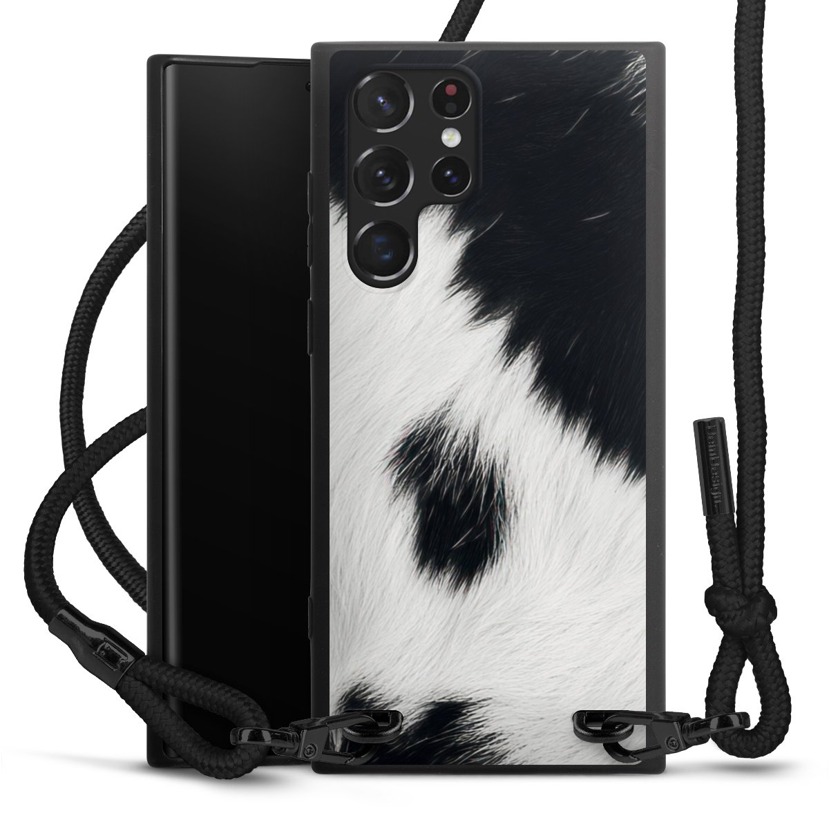 The matt black silicone case is made of flexible TPU (thermoplastic polyurethane) and offers robust protection. The durable, unbreakable material makes the cover flexible and dimensionally stable at the same time. The matte surface makes your design stand out more and is less susceptible to fingerprints and dirt. The stylish trend accessory fits comfortably in the hand and is perfectly complemented by the fabric (polyester) mobile phone strap. The braided fabric strap is approx. 1.70 metres long with a diameter of approx. 0.5 cm. Due to the special knotting technique, the length of the strap can be adjusted by simply pulling it, so that you can adapt it individually to your wishes. The practical case to wear around your neck is available with the fabric strap in black. As a little icing on the cake, we have provided the strap with a chic metal fastener in matt black. The strap is securely fastened to the case with loops made of high-quality genuine leather and press studs. The ends of the fabric strap are covered with metallic end caps and thus protected from fraying.