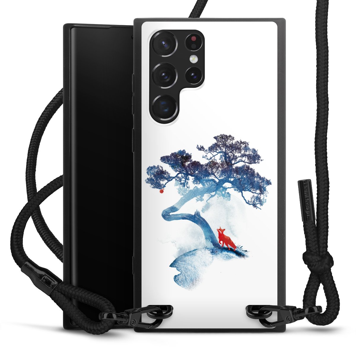 We use the solid direct print process for this phone case, which is why the print area only covers the back and the edge remains unprinted. The case to wear around your neck can be ordered unprinted, fully printed, or partially printed. For your design, either choose one of our exclusive shop motifs or get creative and create your own design, for example with photos and overlays. Design your own personal trend accessory and make an individual statement on the streets!
