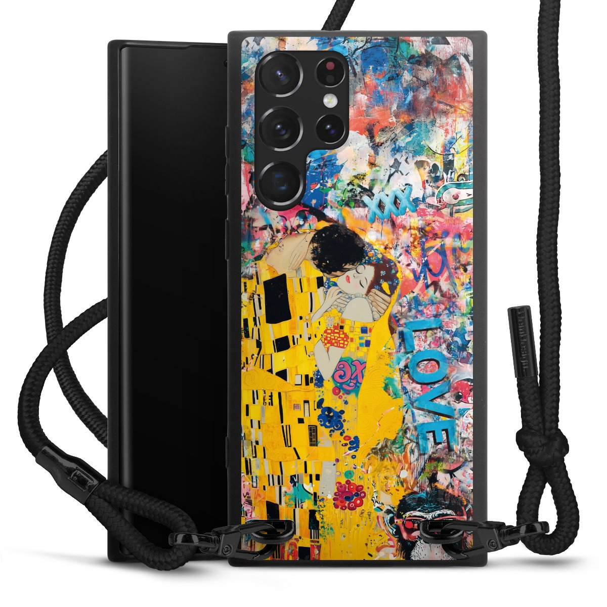 We use the solid direct print process for this phone case, which is why the print area only covers the back and the edge remains unprinted. The case to wear around your neck can be ordered unprinted, fully printed, or partially printed. For your design, either choose one of our exclusive shop motifs or get creative and create your own design, for example with photos and overlays. Design your own personal trend accessory and make an individual statement on the streets!