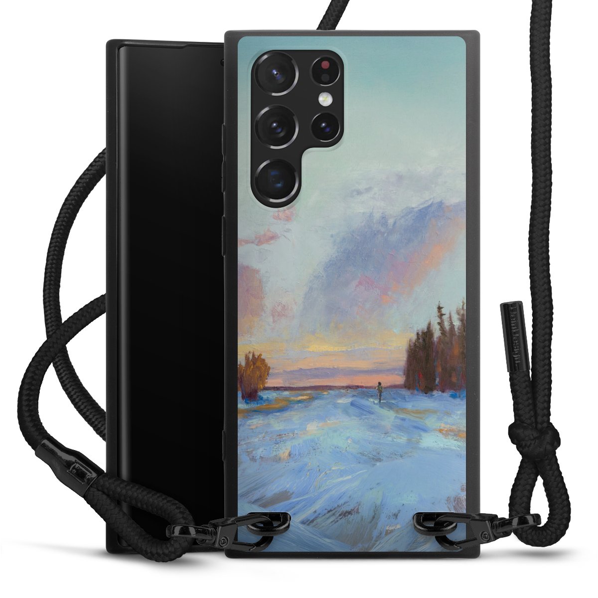 We use the solid direct print process for this phone case, which is why the print area only covers the back and the edge remains unprinted. The case to wear around your neck can be ordered unprinted, fully printed, or partially printed. For your design, either choose one of our exclusive shop motifs or get creative and create your own design, for example with photos and overlays. Design your own personal trend accessory and make an individual statement on the streets!