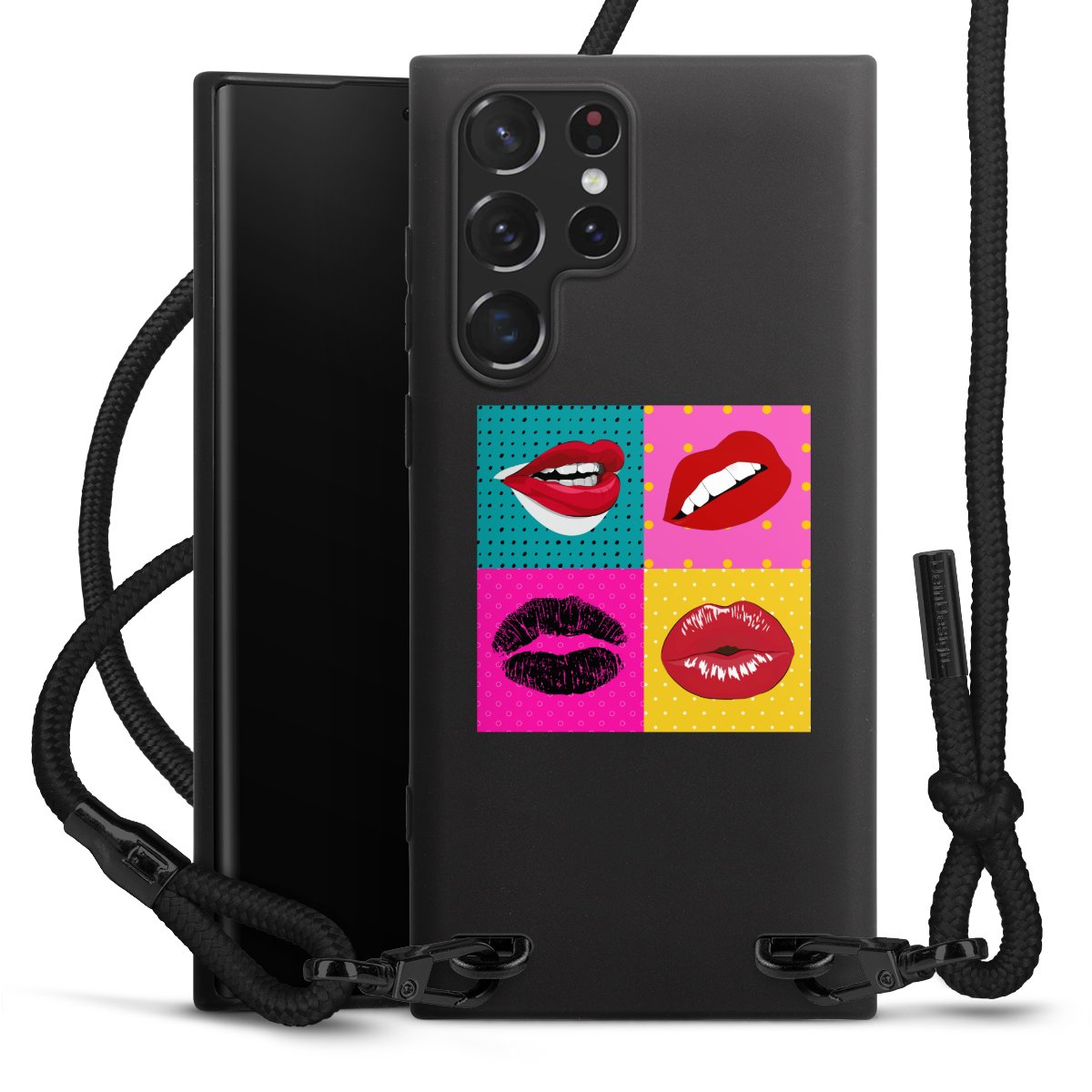 We use the solid direct print process for this phone case, which is why the print area only covers the back and the edge remains unprinted. The case to wear around your neck can be ordered unprinted, fully printed, or partially printed. For your design, either choose one of our exclusive shop motifs or get creative and create your own design, for example with photos and overlays. Design your own personal trend accessory and make an individual statement on the streets!
