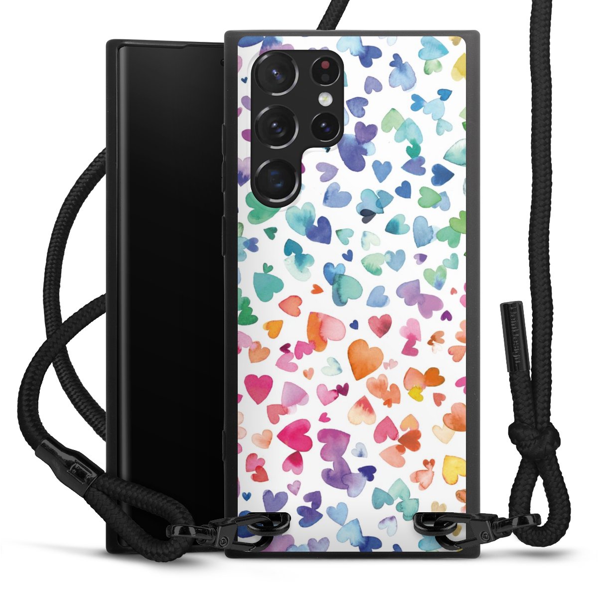 We use the solid direct print process for this phone case, which is why the print area only covers the back and the edge remains unprinted. The case to wear around your neck can be ordered unprinted, fully printed, or partially printed. For your design, either choose one of our exclusive shop motifs or get creative and create your own design, for example with photos and overlays. Design your own personal trend accessory and make an individual statement on the streets!