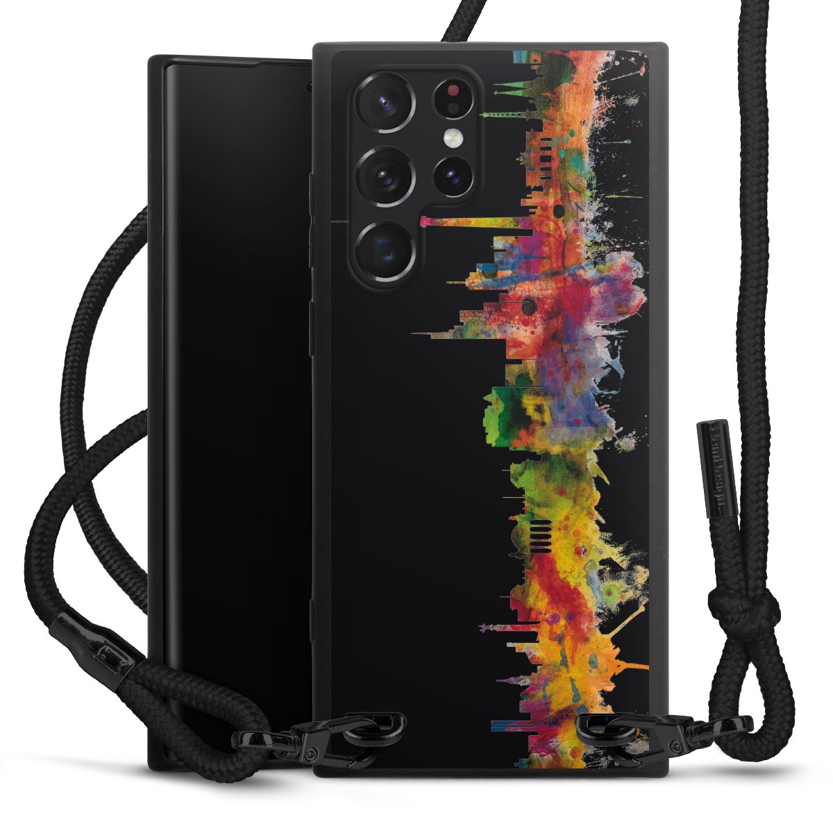 We use the solid direct print process for this phone case, which is why the print area only covers the back and the edge remains unprinted. The case to wear around your neck can be ordered unprinted, fully printed, or partially printed. For your design, either choose one of our exclusive shop motifs or get creative and create your own design, for example with photos and overlays. Design your own personal trend accessory and make an individual statement on the streets!
