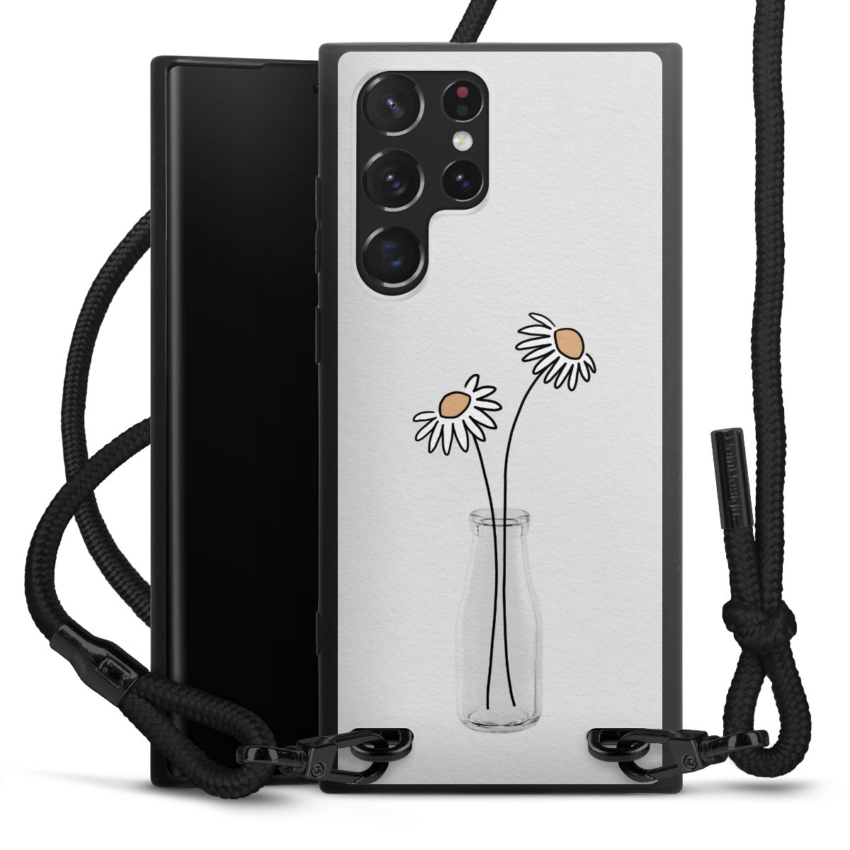 The matt black silicone case is made of flexible TPU (thermoplastic polyurethane) and offers robust protection. The durable, unbreakable material makes the cover flexible and dimensionally stable at the same time. The matte surface makes your design stand out more and is less susceptible to fingerprints and dirt. The stylish trend accessory fits comfortably in the hand and is perfectly complemented by the fabric (polyester) mobile phone strap. The braided fabric strap is approx. 1.70 metres long with a diameter of approx. 0.5 cm. Due to the special knotting technique, the length of the strap can be adjusted by simply pulling it, so that you can adapt it individually to your wishes. The practical case to wear around your neck is available with the fabric strap in black. As a little icing on the cake, we have provided the strap with a chic metal fastener in matt black. The strap is securely fastened to the case with loops made of high-quality genuine leather and press studs. The ends of the fabric strap are covered with metallic end caps and thus protected from fraying.
