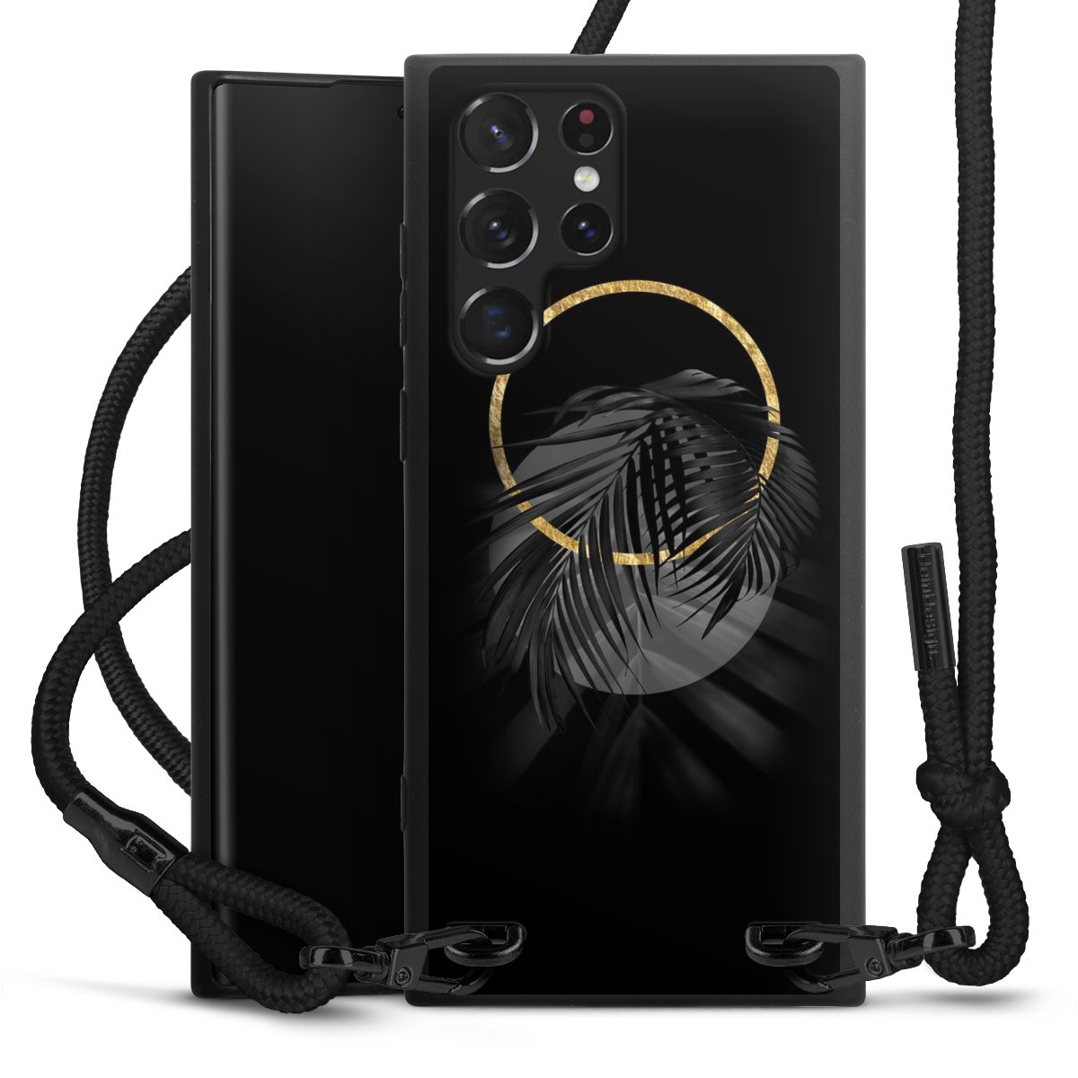 The matt black silicone case is made of flexible TPU (thermoplastic polyurethane) and offers robust protection. The durable, unbreakable material makes the cover flexible and dimensionally stable at the same time. The matte surface makes your design stand out more and is less susceptible to fingerprints and dirt. The stylish trend accessory fits comfortably in the hand and is perfectly complemented by the fabric (polyester) mobile phone strap. The braided fabric strap is approx. 1.70 metres long with a diameter of approx. 0.5 cm. Due to the special knotting technique, the length of the strap can be adjusted by simply pulling it, so that you can adapt it individually to your wishes. The practical case to wear around your neck is available with the fabric strap in black. As a little icing on the cake, we have provided the strap with a chic metal fastener in matt black. The strap is securely fastened to the case with loops made of high-quality genuine leather and press studs. The ends of the fabric strap are covered with metallic end caps and thus protected from fraying.