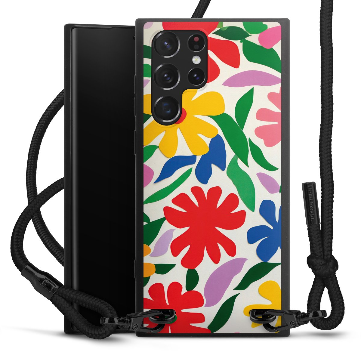 We use the solid direct print process for this phone case, which is why the print area only covers the back and the edge remains unprinted. The case to wear around your neck can be ordered unprinted, fully printed, or partially printed. For your design, either choose one of our exclusive shop motifs or get creative and create your own design, for example with photos and overlays. Design your own personal trend accessory and make an individual statement on the streets!