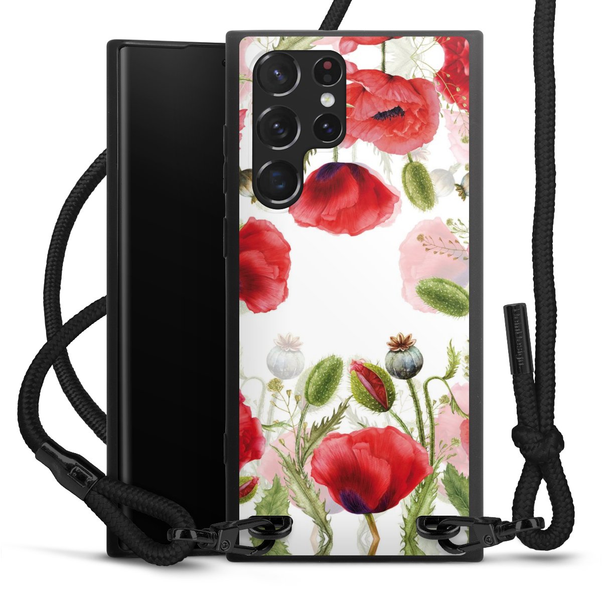 The matt black silicone case is made of flexible TPU (thermoplastic polyurethane) and offers robust protection. The durable, unbreakable material makes the cover flexible and dimensionally stable at the same time. The matte surface makes your design stand out more and is less susceptible to fingerprints and dirt. The stylish trend accessory fits comfortably in the hand and is perfectly complemented by the fabric (polyester) mobile phone strap. The braided fabric strap is approx. 1.70 metres long with a diameter of approx. 0.5 cm. Due to the special knotting technique, the length of the strap can be adjusted by simply pulling it, so that you can adapt it individually to your wishes. The practical case to wear around your neck is available with the fabric strap in black. As a little icing on the cake, we have provided the strap with a chic metal fastener in matt black. The strap is securely fastened to the case with loops made of high-quality genuine leather and press studs. The ends of the fabric strap are covered with metallic end caps and thus protected from fraying.